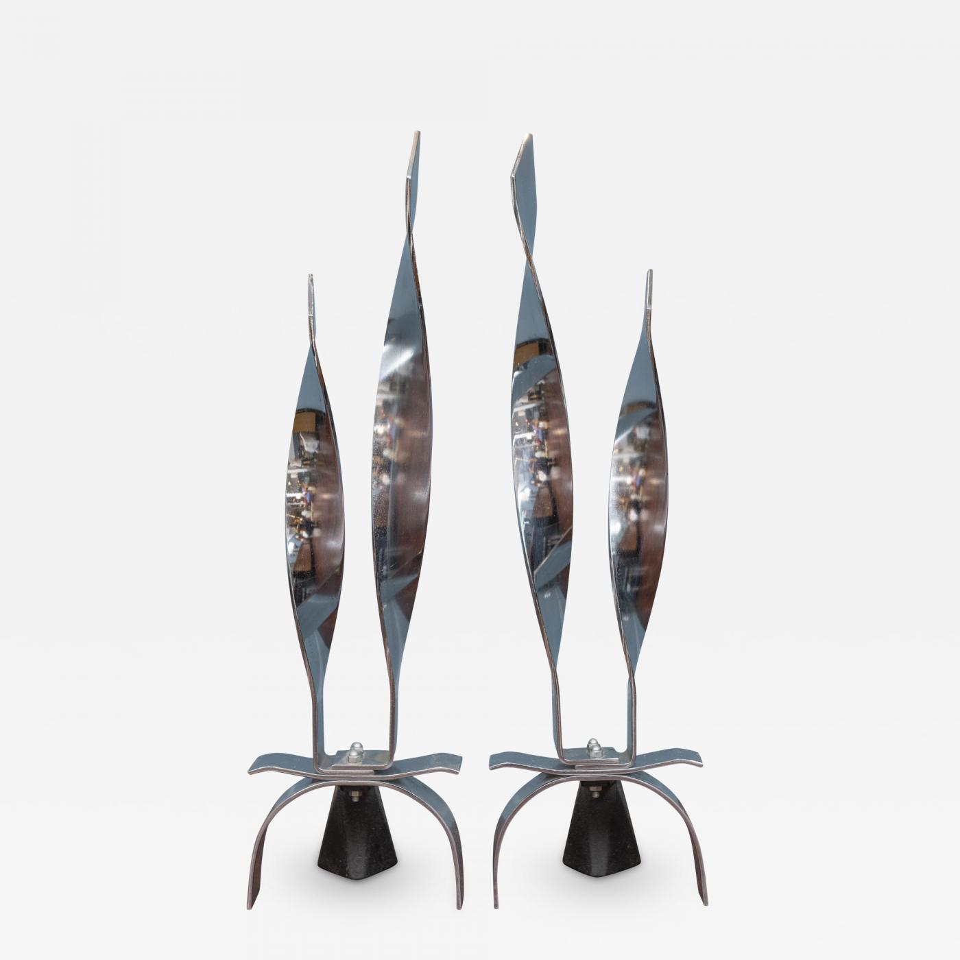 Chrome and steel flame form andirons. Stylish combination of form with a function, in very good original condition.