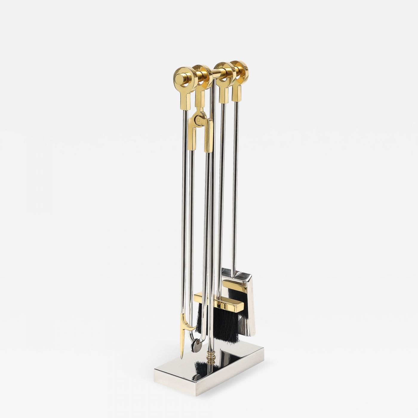 Danny Alessandro Fireplace Tools, Brass, Nickel Chrome, Ring Handle