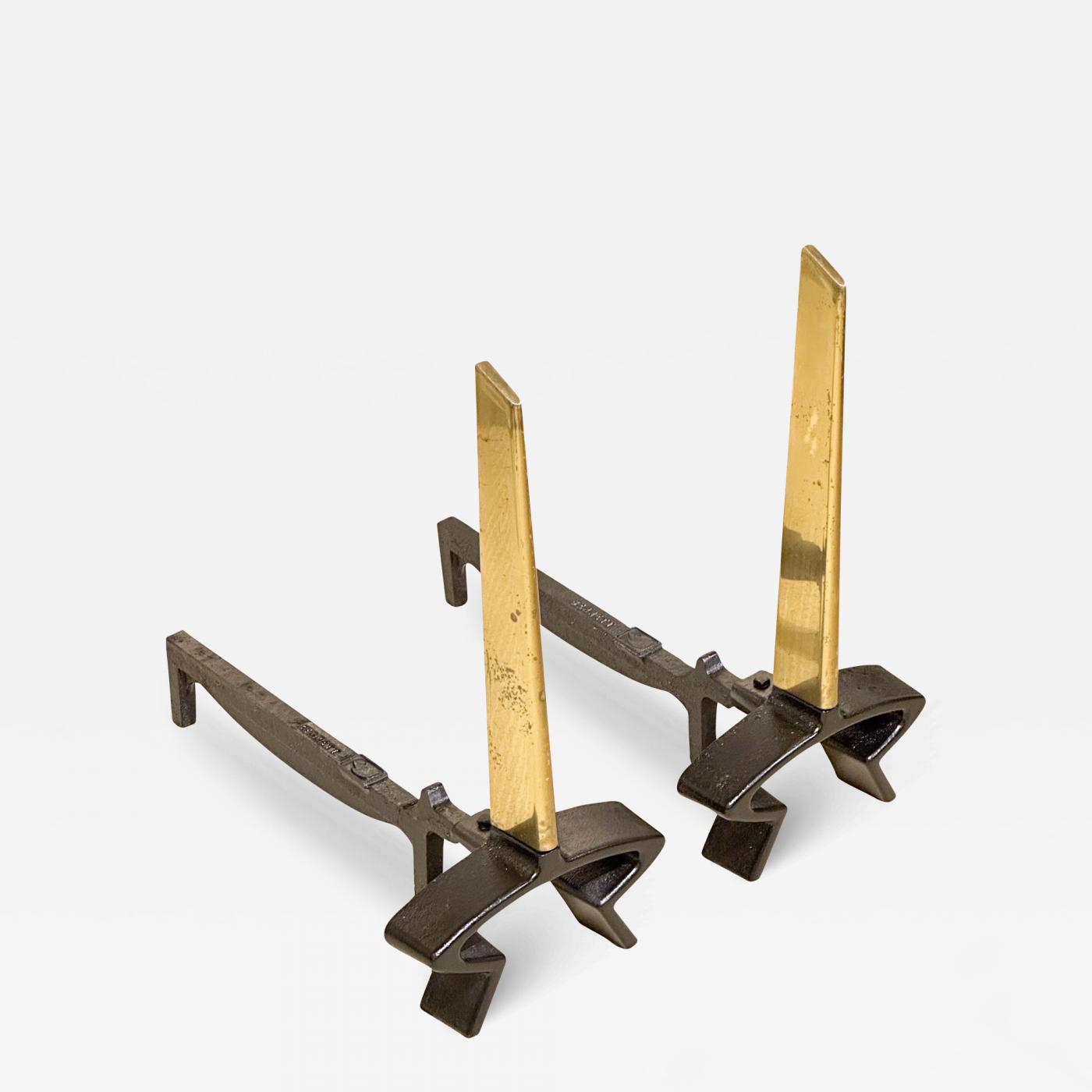 Brass and Iron Geometric Andirons
