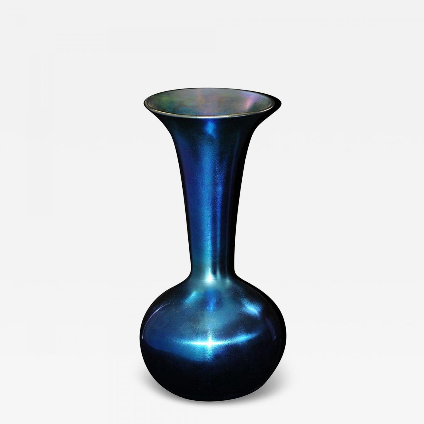 Durand Cobalt Blue Iridescent Monument Trumpet Vase