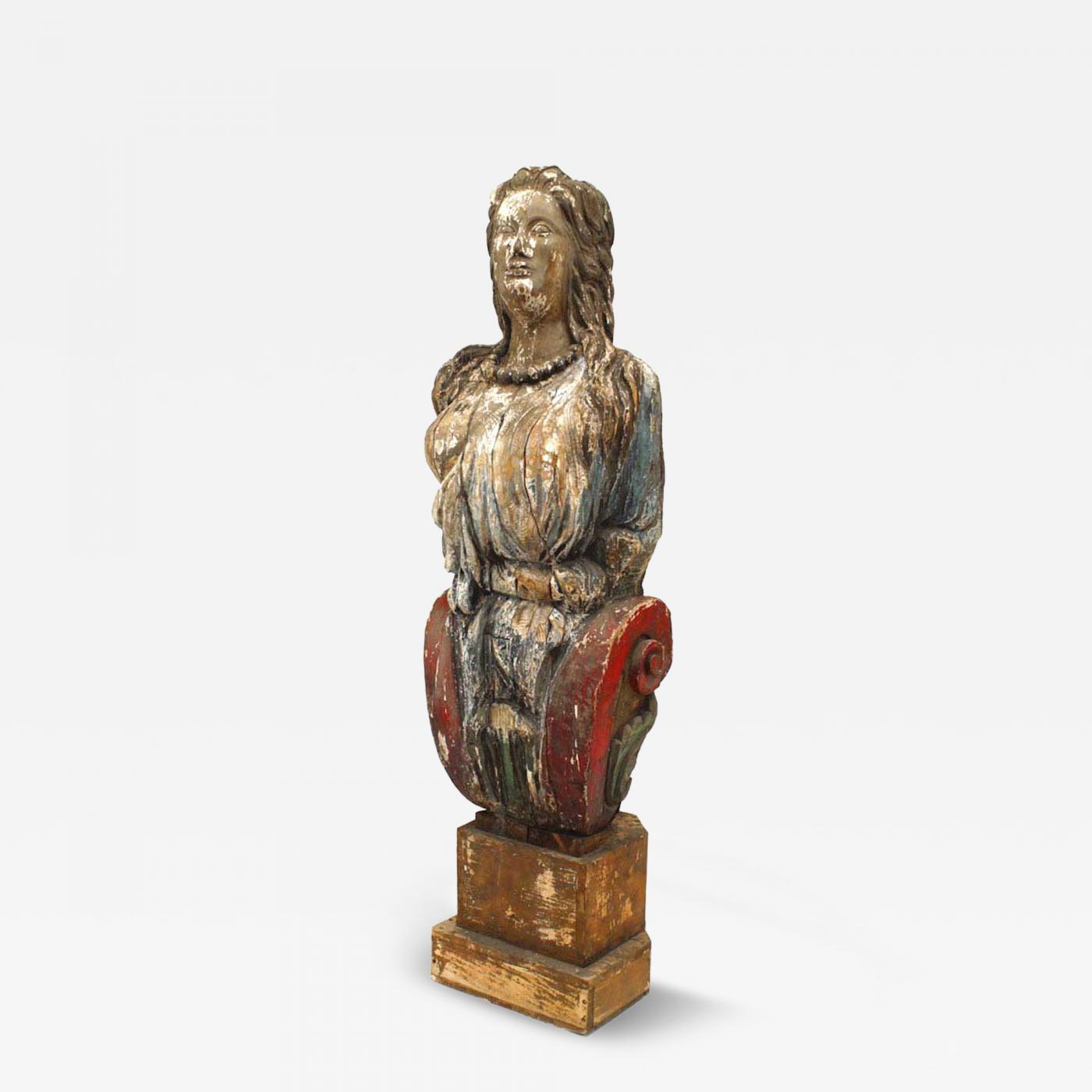 English Country style (19th Cent) carved and painted figurehead of lady with necklace and one breast exposed.