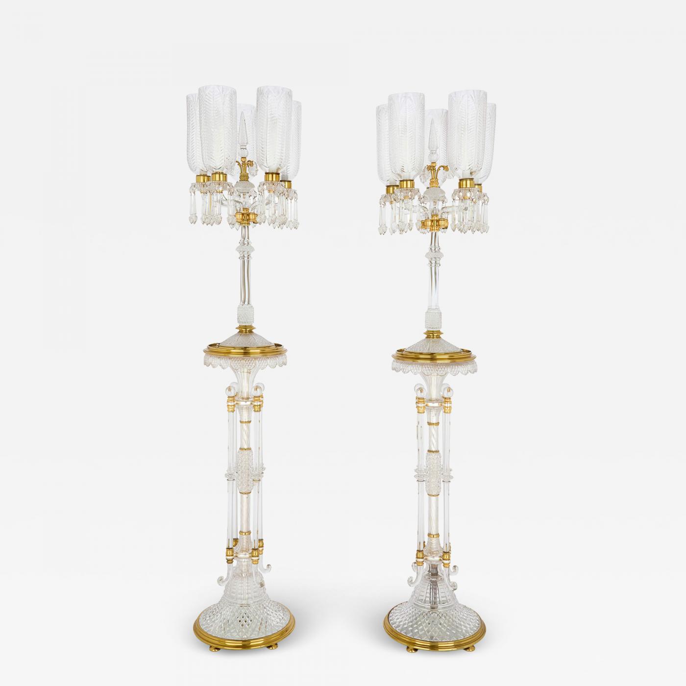 This luxurious pair of large antique candelabra showcases exceptional craftsmanship and striking design, produced by the renowned glassmakers F. & C. Osler. Founded in 1807 in Birmingham, Osler quickly became one of the most celebrated names in decorative glass, securing commissions from noble households and royal courts across the globe.
