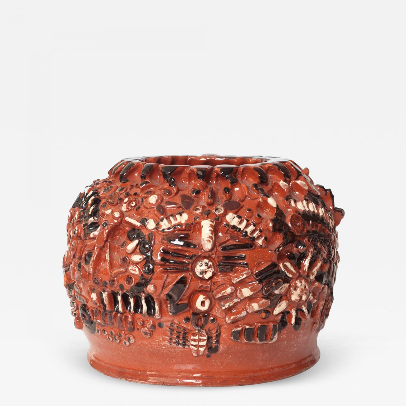 Documentation: Signed Origin: Sweden Period: 1950-1979 Materials: hand throw clay, with relief in black and white on a red glaze Condition: Good. no damage Creation Date: 1960 Styles / Movements: Modern, Art Pottery, Scandinavian Modern Patterns: Abstract, Handmade Incollect Reference #: 589183 -