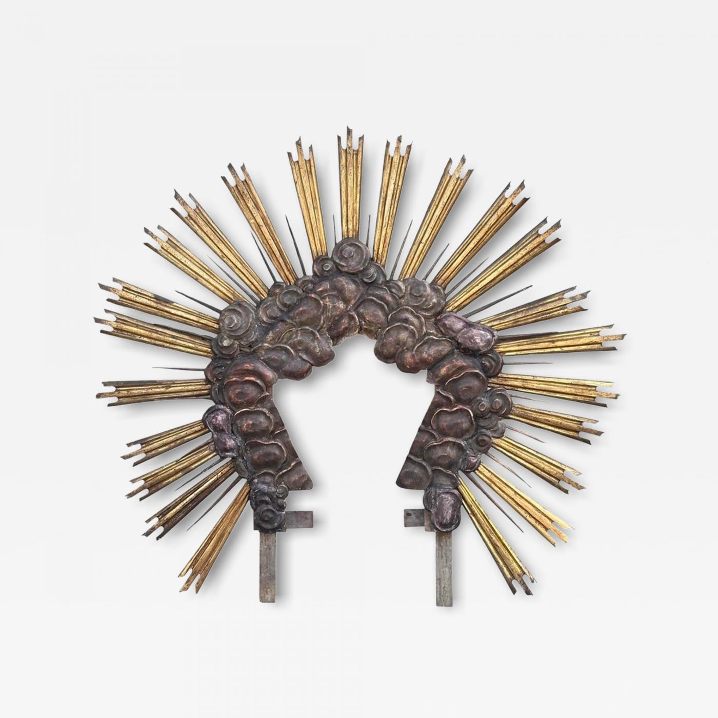 Huge Antique Early 18th C Giltwood Starburst Santos Crown