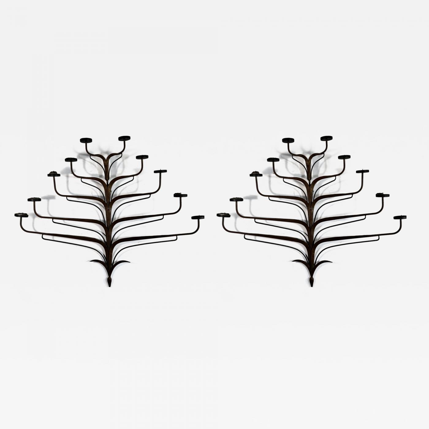ITALIAN PAIR OF MODERN METAL FROND FORM 10 CANDLE WALL SCONCES