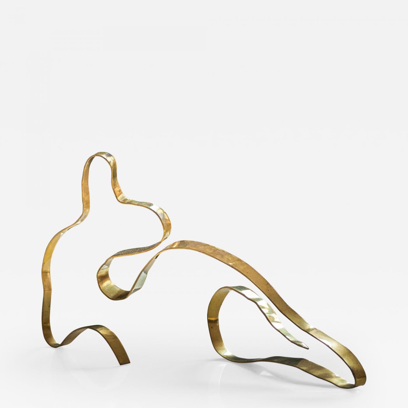 A small scale figurative sculpture formed with a band of brass and hammered. Unique piece