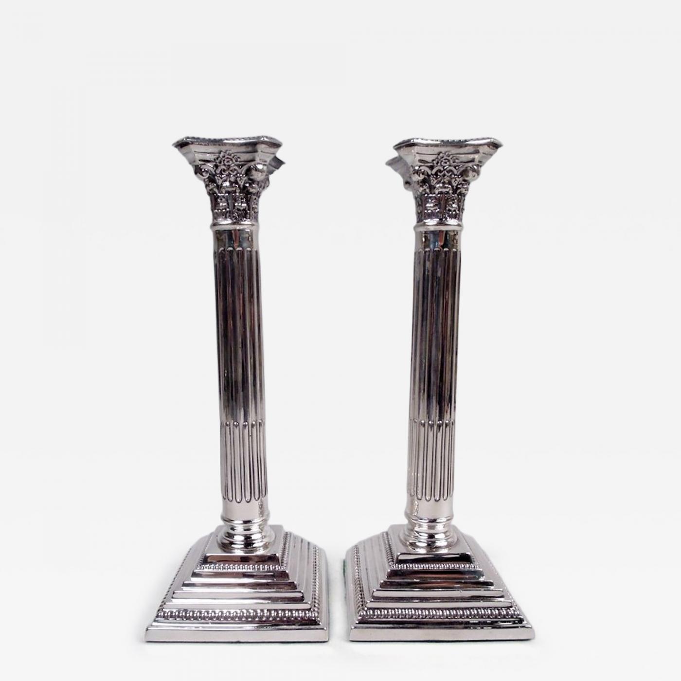 Pair of English Neoclassical Sterling Silver Column Candlesticks 1933