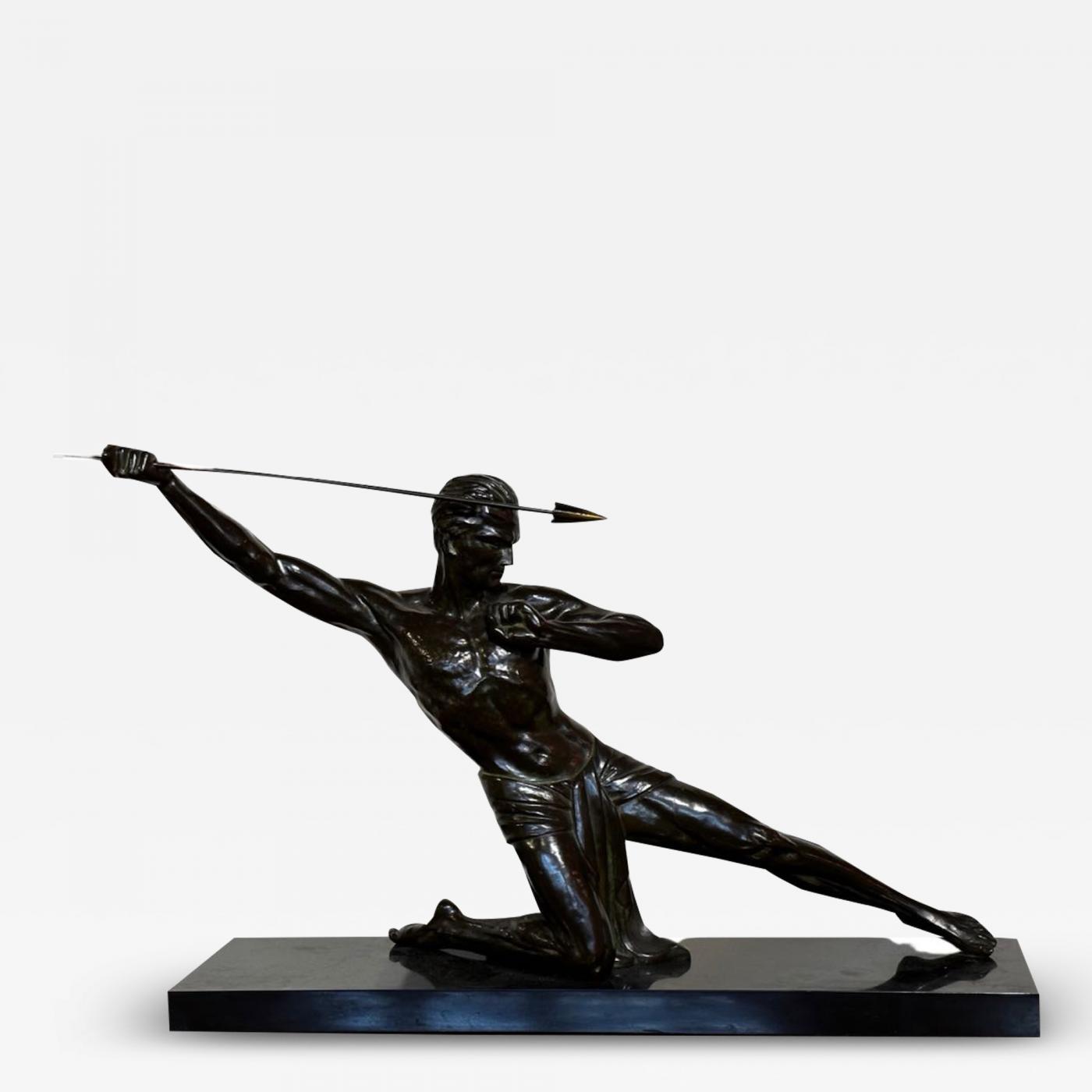 Art Deco Bronze Warrior Javelin Thrower by P. Hugonnet French 1930s