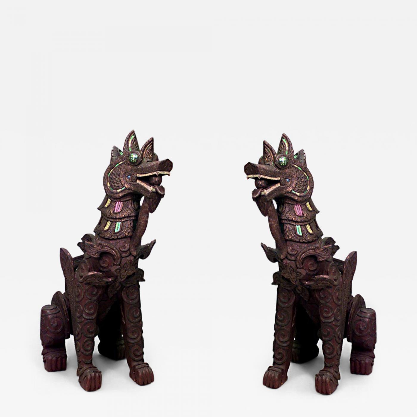 Pair of Chinese Carved Foo Dogs