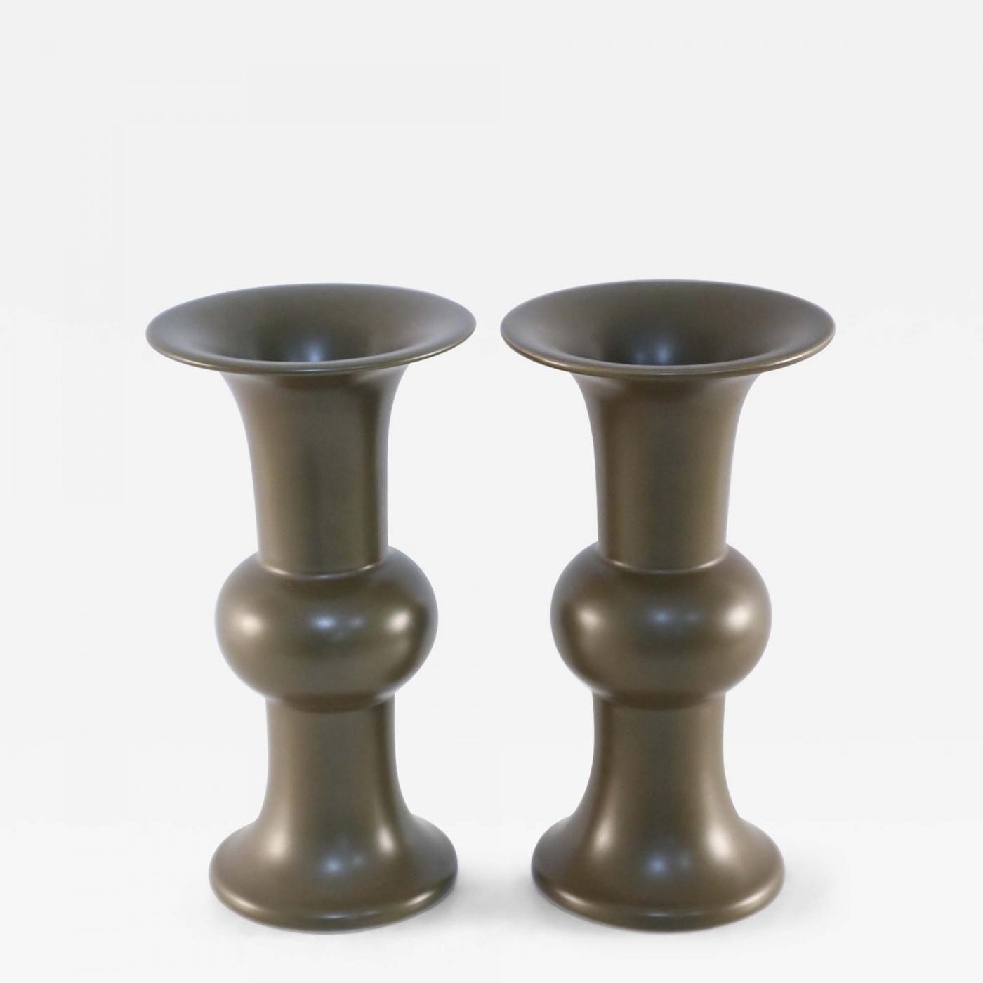 PAIR of Antique Chinese (late 19th Century) ceramic vases with a deep green teadust glaze and beaker-shaped forms (mark on bottom, see photos) (PRICED AS PAIR).