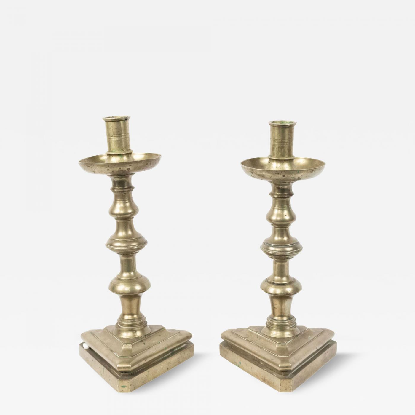 Pair of English Country Pewter Candlesticks