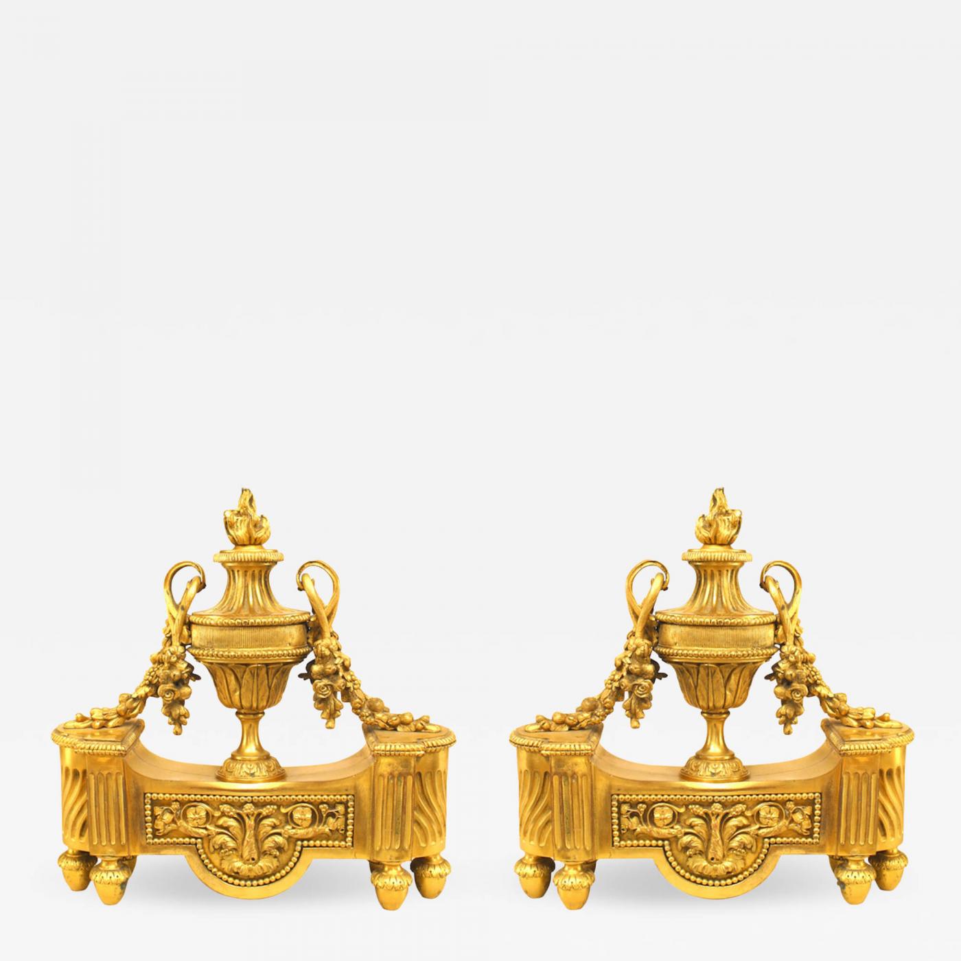 Pair of French Louis XVI Style Bronze Urn Andirons