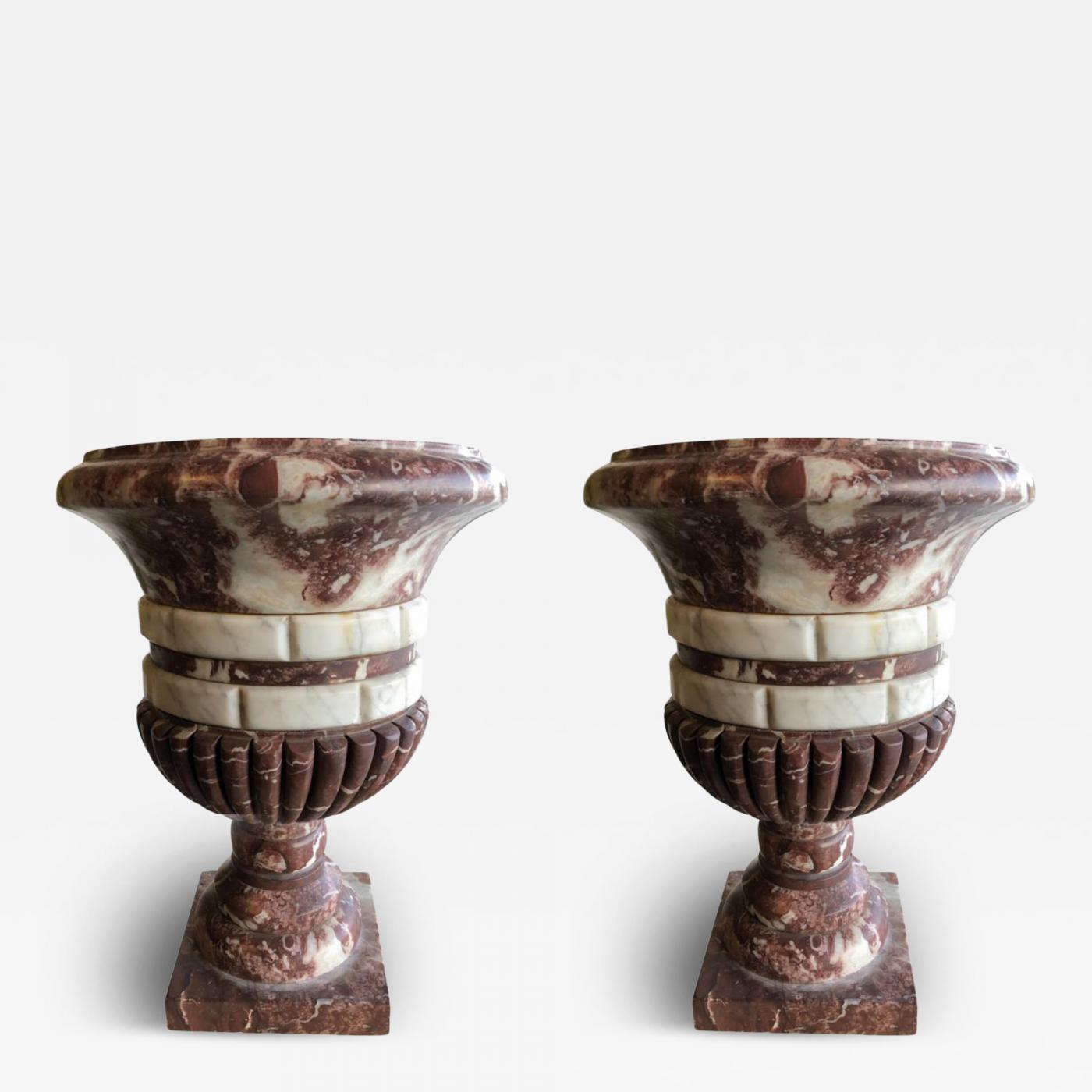 Pair of Italian Neo-classic Rosso Antico & Carrara Marble Grand Tour Urns