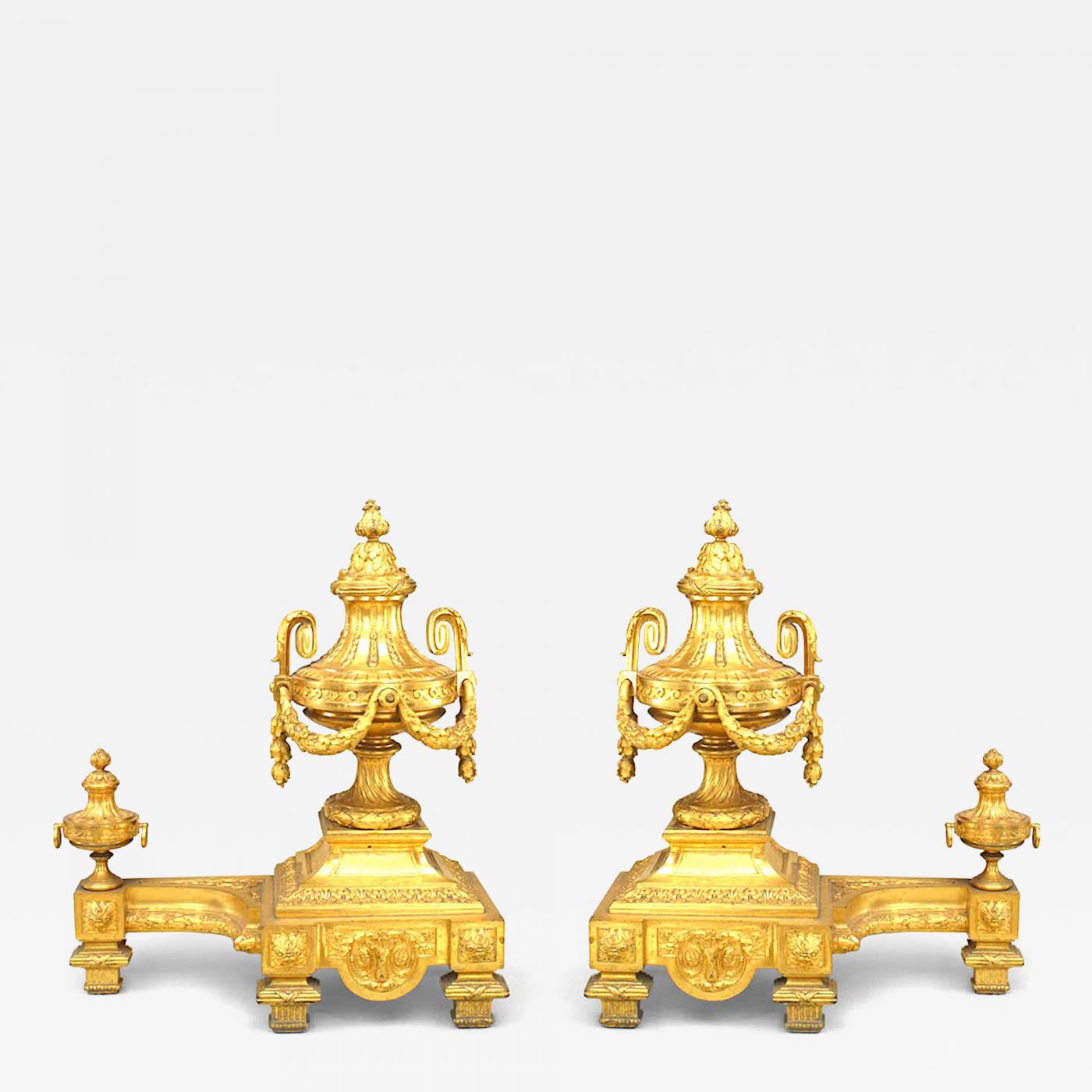 Pair of Louis XVI Bronze Dore Urn Andirons