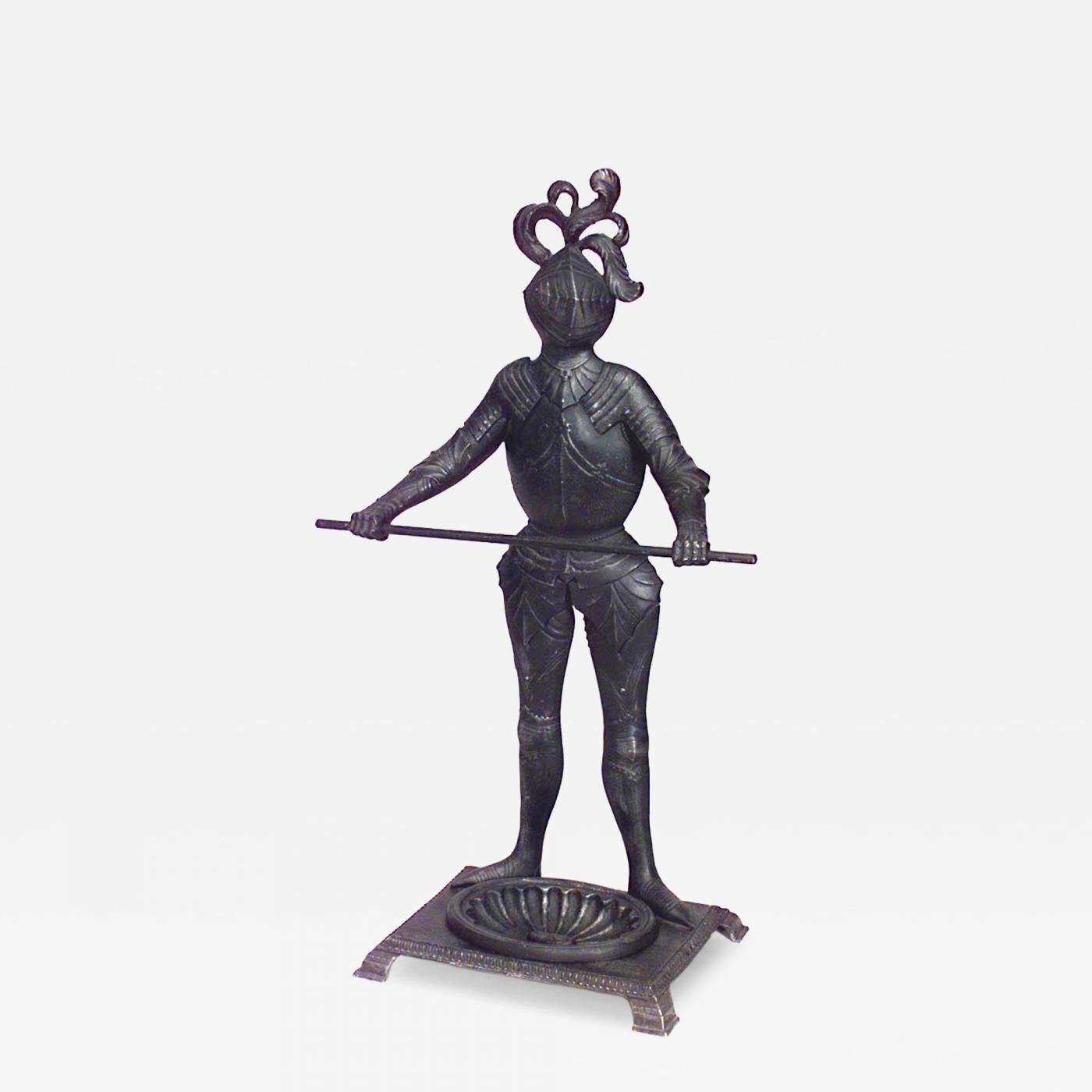 English Renaissance-style (20th Century) wrought iron knight figure umbrella stand.