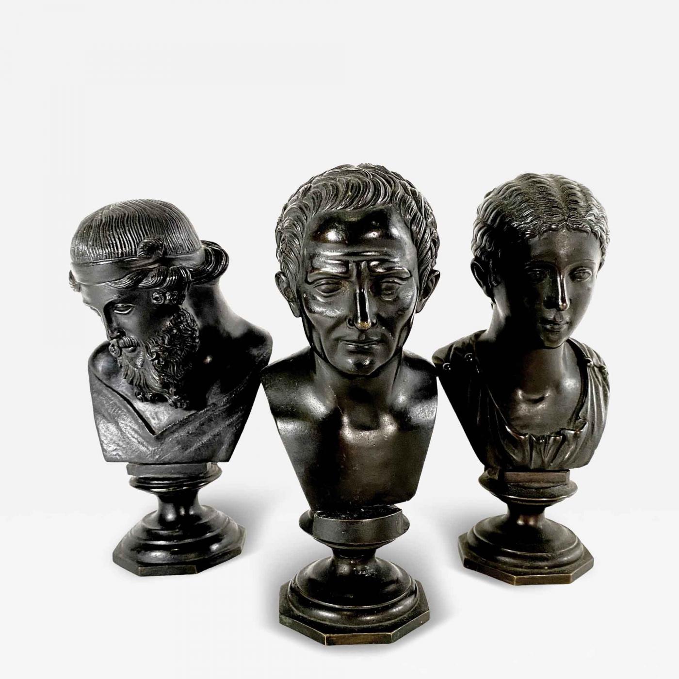 Set 3 Italian Neoclassic Style Patinated Bronze Reductions of Busts of Emperors