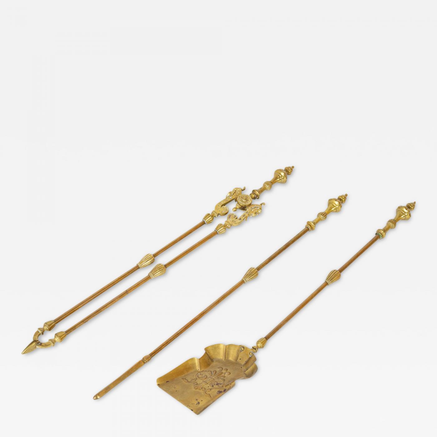 Set of Three Brass Fire Tools with Mythical Creature Motif