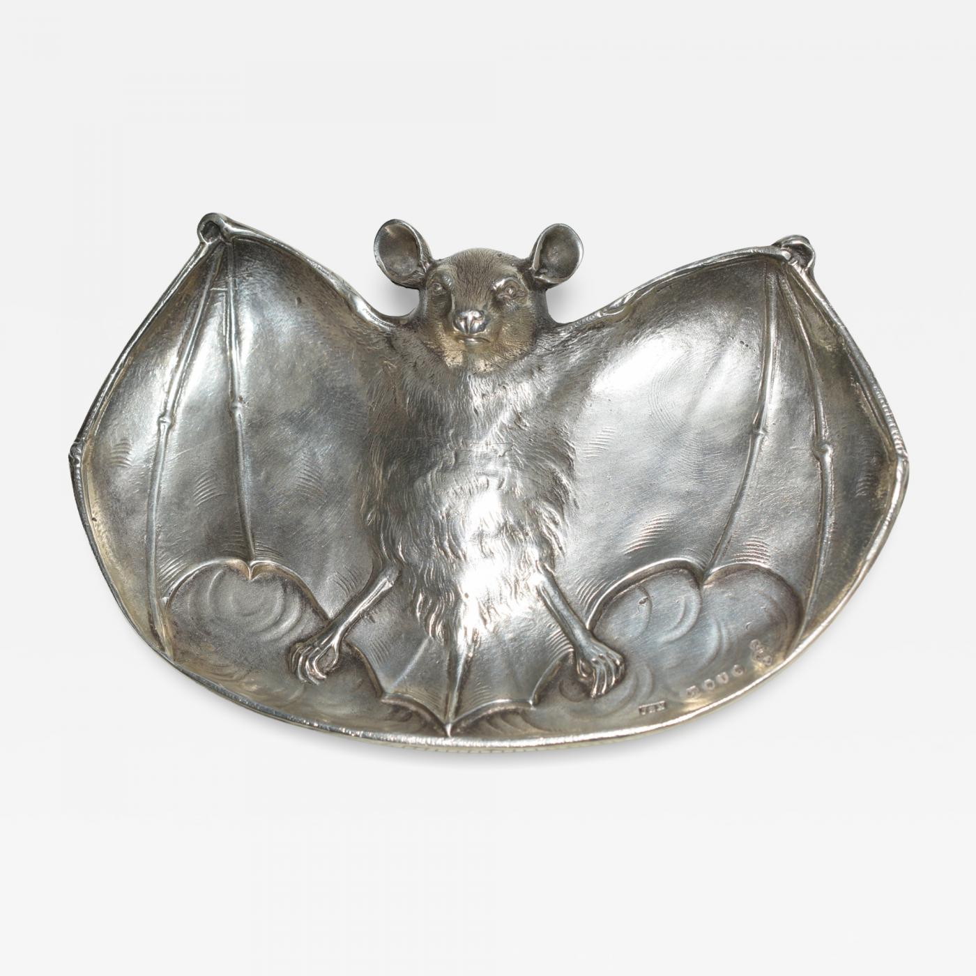An extremely rare sterling silver vide poche figural dish modeled as a Flying Bat. Fully hallmarked and made by John Robert Harris , London c. 1874.