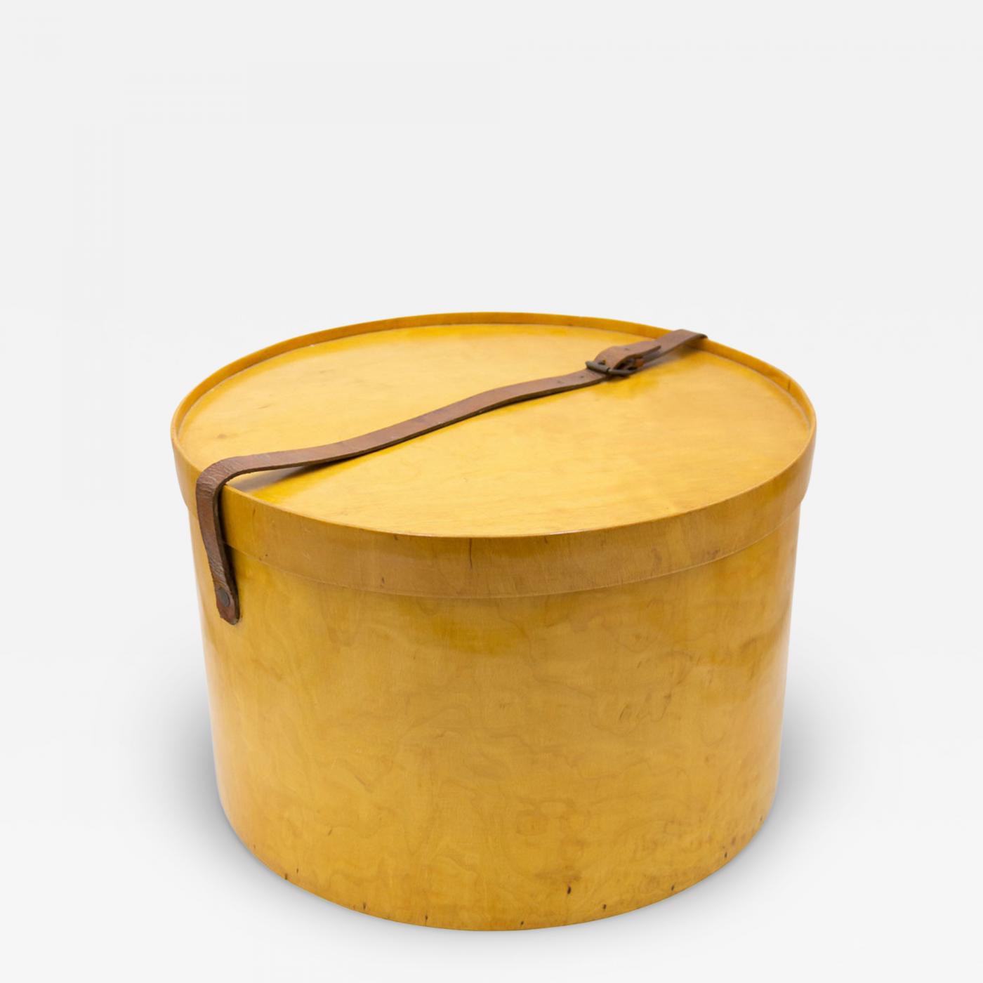 Depth: 18.5" || Swedish Biedermeier-style (20th Century) Karelian birch round shaped hat box with leather strap