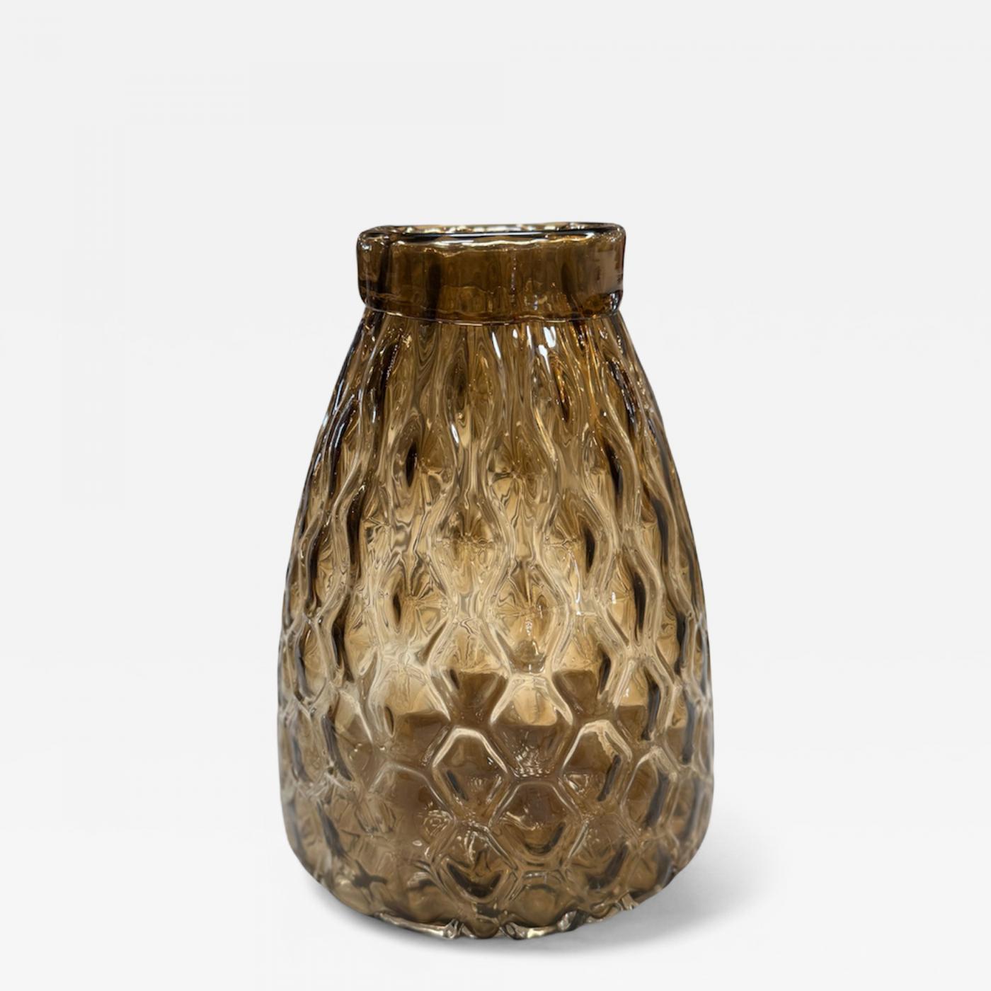 Charming amber glass vase featuring a diamond-patterned textured surface that catches and reflects light beautifully. The warm golden-brown hue and rounded silhouette give it a vintage yet modern appeal, perfect for adding warmth and style to any tabletop or decorative display.
