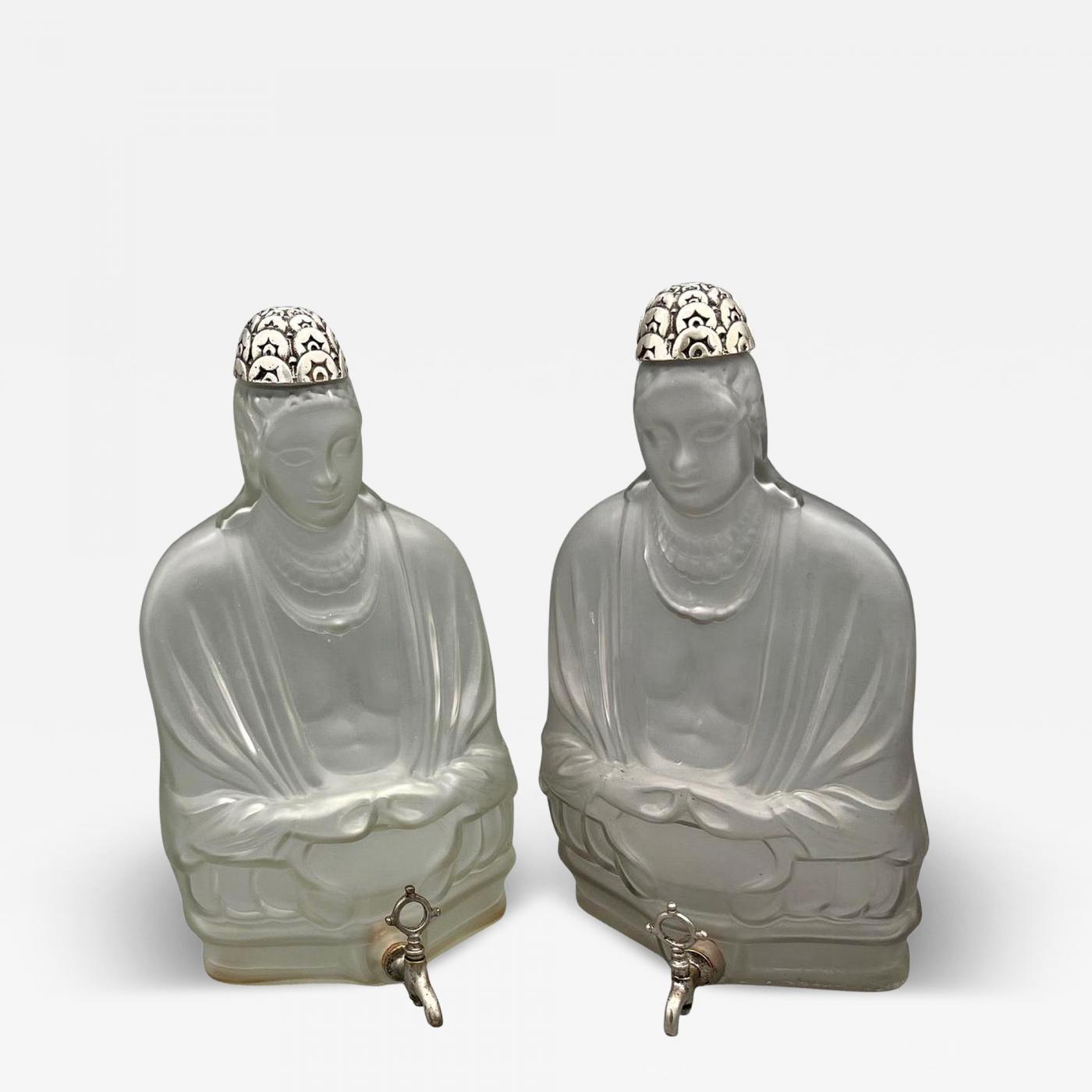 Two blown-and-molded glass perfume fountains, depicting two Buddhas.