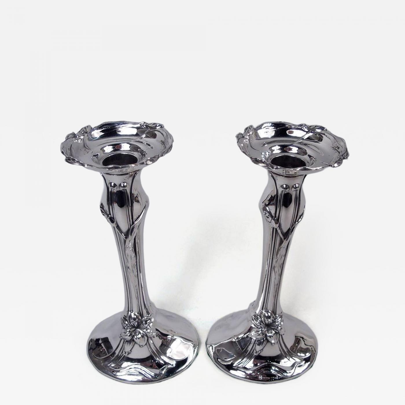 Pair of Antique American Art Nouveau Sterling Silver Candlesticks