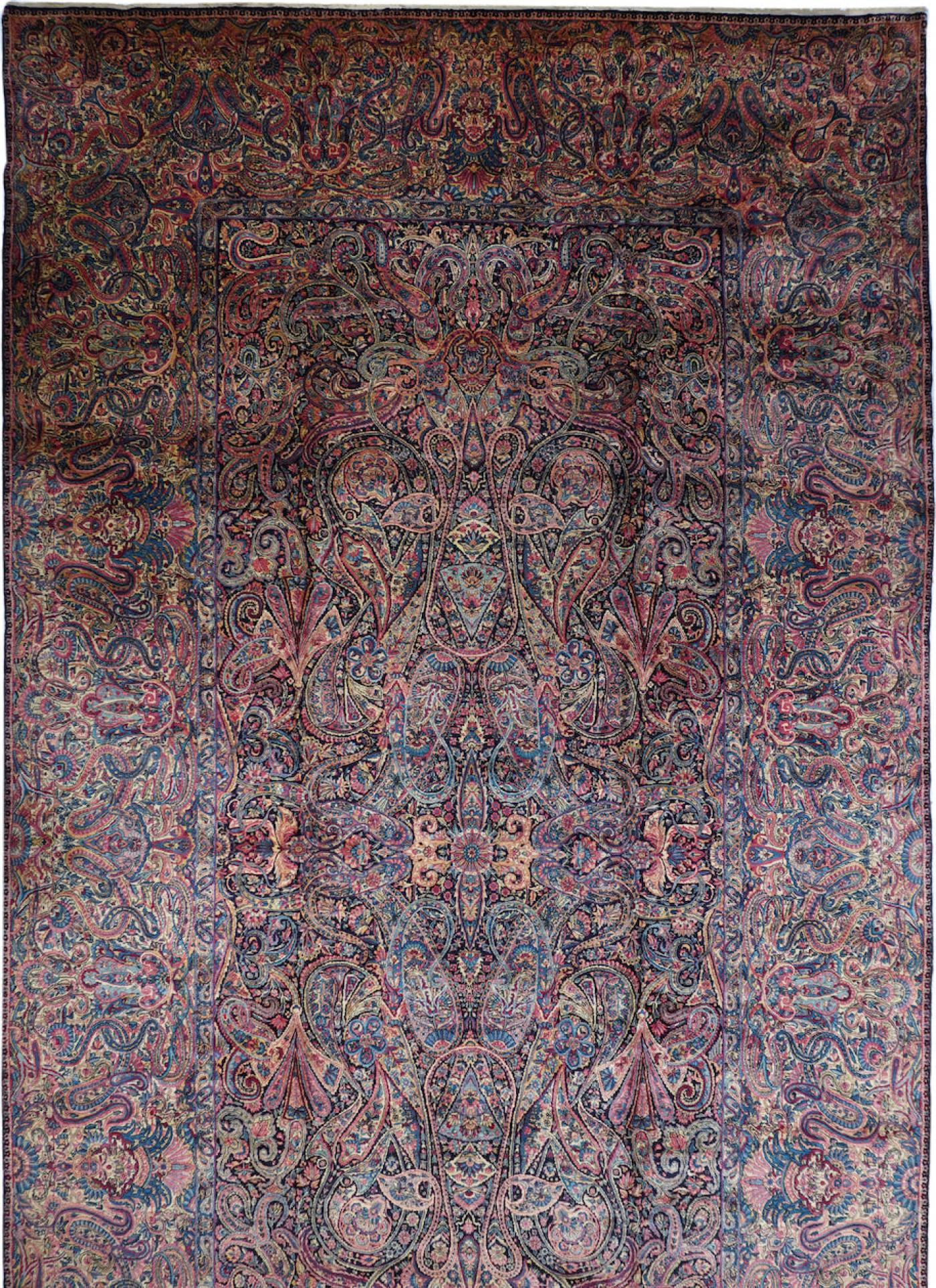 SE Persian city, famous since 17th century for an artistic variety of scatter rugs and large carpets in medallion and allover styles, changing with export tastes. In the 20th century, more popular in America. Antiques are brighter, but vintage carpets are softer. Complex, broad palettes in natural dyes. Fine to very fine weave. Medium price to expensive. Recent pieces are undervalued.