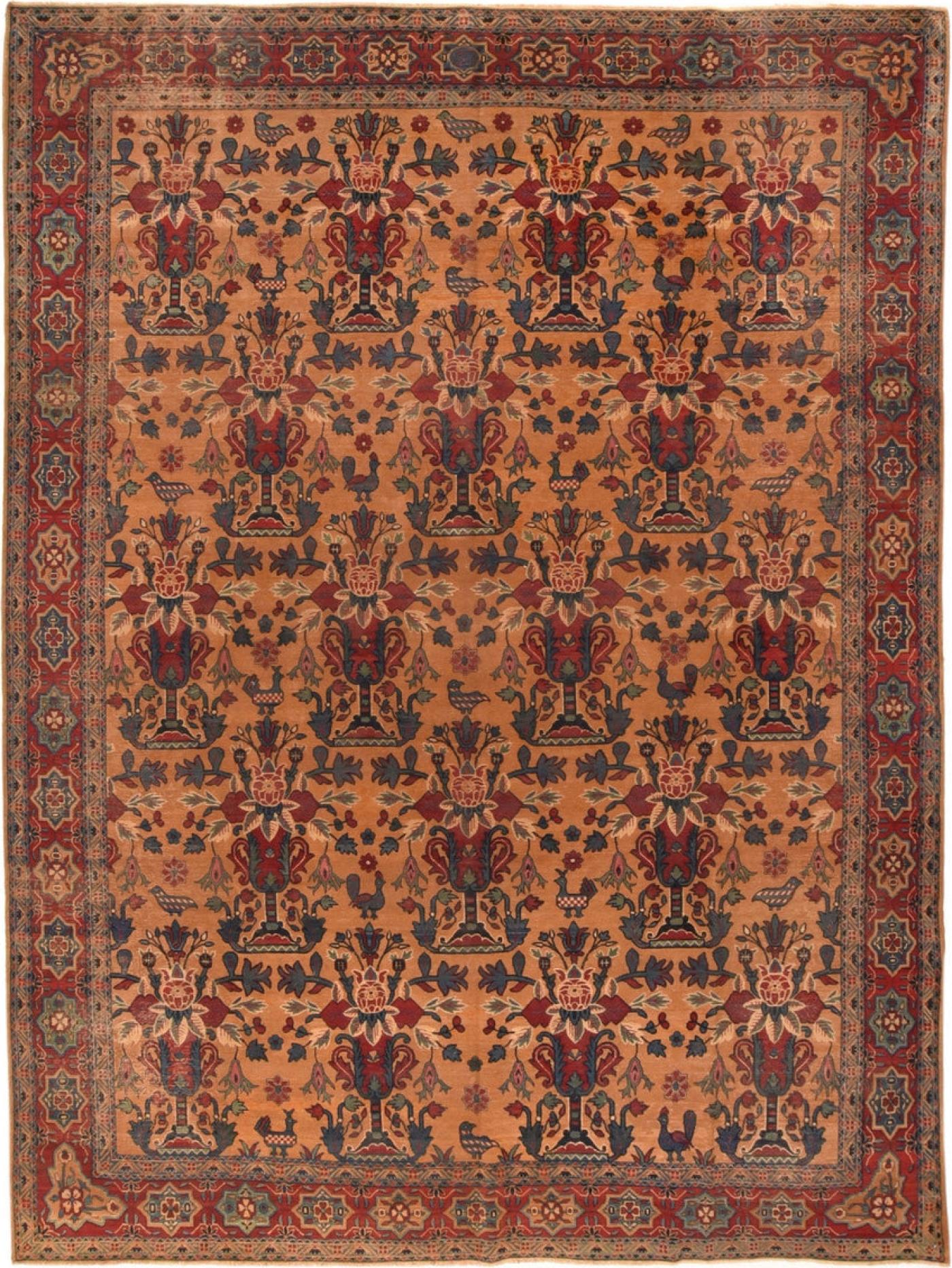 SE Persian city famous since 17th century for an artistic variety of scatter rugs and large carpets in medallion and allover styles changing with export tastes. In the 20th century more popular in America. Antiques are brighter but vintage carpets are softer. Complex broad palettes in natural dyes. Fine to very fine weave. Medium price to expensive. Recent pieces are undervalued.