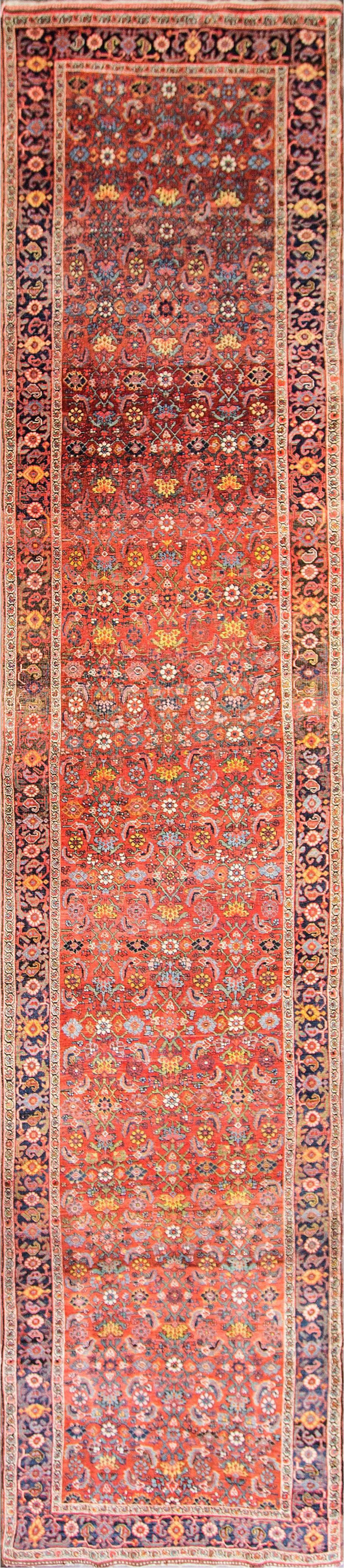 Antique Persian Kurdish Bidjar Runner, 3'8" x 17'6"