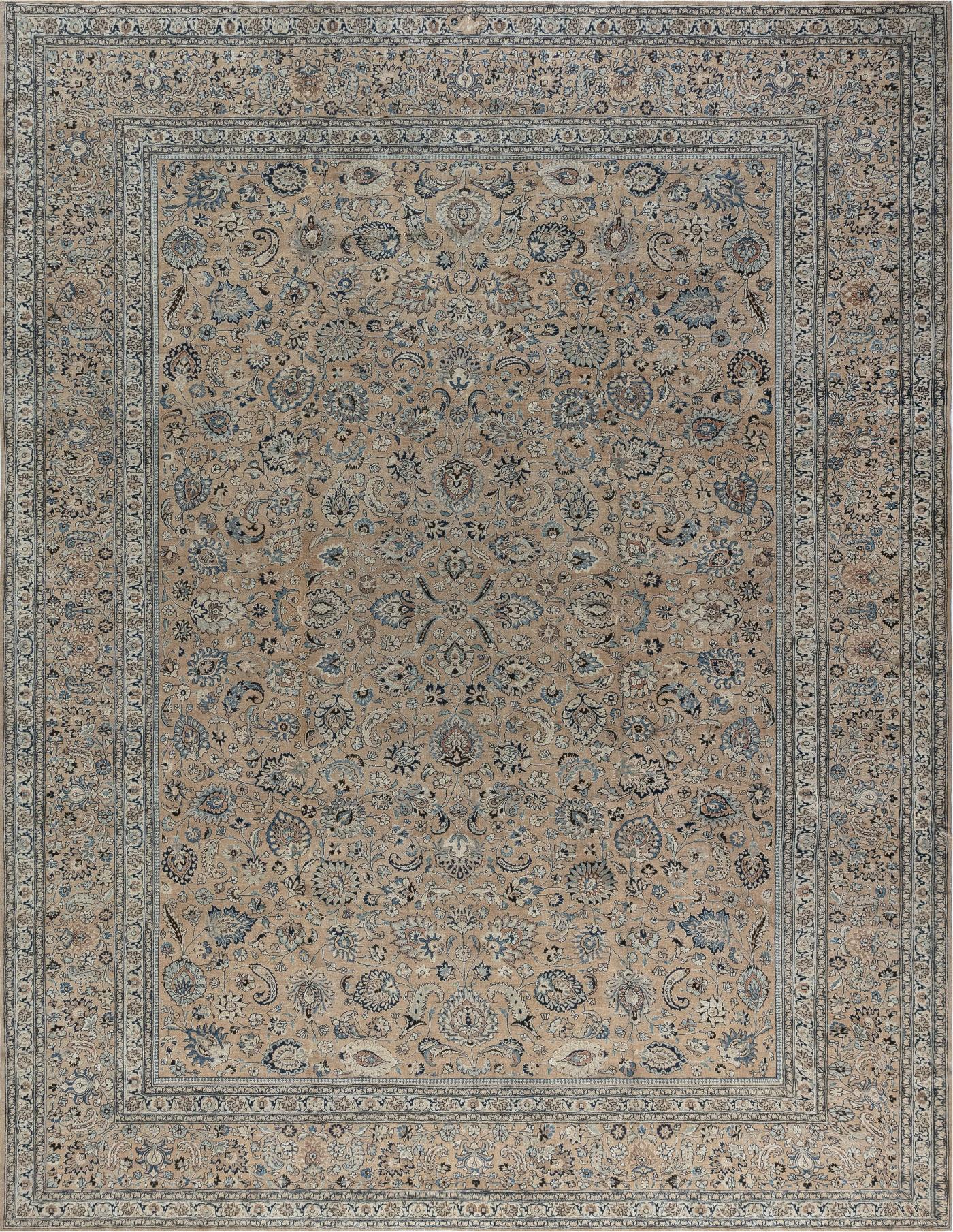 Meshad, is the administrative seat of the Khorassan province which is located in Iran’s east, bordering the Salt Desert to the west and Afghanistan and Turkmenistan to the east. It was a major oasis along the famed Silk Road, which stretched some 4,000 miles from China and India all the way to the Mediterranean which in turn allowed European access to Chinese goods. Meshad is currently Iran’s second largest city with over three million residents. The broader region is home to many well-known Oriental rug workshops in the towns of Amoghli, Khamenei, Makhmalbaf, Saber, and Zarbaf which produce antique Persian rugs that feature both symmetrical and asymmetrical knots. Antique Meshad rugs are 'jufti' knotted, a technique used in antique Khorassan carpets and well. -