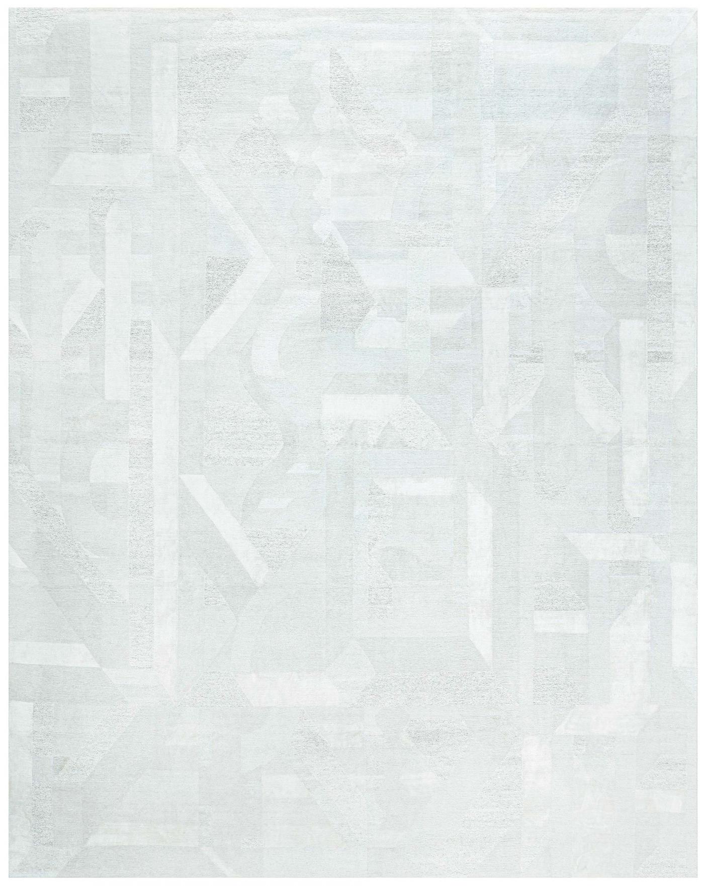 A contemporary hand-knotted aloe, silk and wool rug features an allover a geometric design in shade of beige and white. Doris Leslie Blau carries an exceptional collection of original modern rugs in many styles and materials. Contemporary hand-made rugs are a bridge throughout history, they are the fruit of the constant evolution of the weaving craft that has accompanied men since the dawn of civilization.