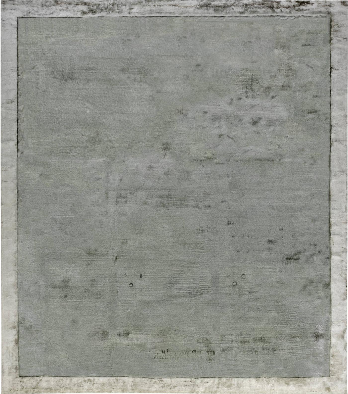This contemporary silk rug was hand-knotted of high-quality silk by a skilled artisan. Such a careful execution ensured that it is unique and durable. If properly maintained, this contemporary silk rug will withstand years of usage without the slightest signs of wear. In terms of design, this contemporary rug is as far from antique aesthetics as possible. It belongs to the category of solid rugs, neutral in color and patternless. Such a minimalistic form will easily complement all kinds of décor, optically enlarging the space and creating an ideal backdrop for other, more saturated shades that may appear. Here, the entire rug is rendered in two shades of muted green. Silk rugs are absolutely unmatched in terms of softness and luster of the pile. Realizing the value of this noble fiber and the perfection that stems from traditional craft, Doris Leslie Blau relies on centuries-old methods of production of our modern and custom rugs. Doris Leslie Blau carries an exceptional collection of original modern rugs in many styles and materials. Contemporary hand-made rugs are a bridge throughout history, they are the fruit of the constant evolution of the weaving craft that has accompanied men since the dawn of civilization.