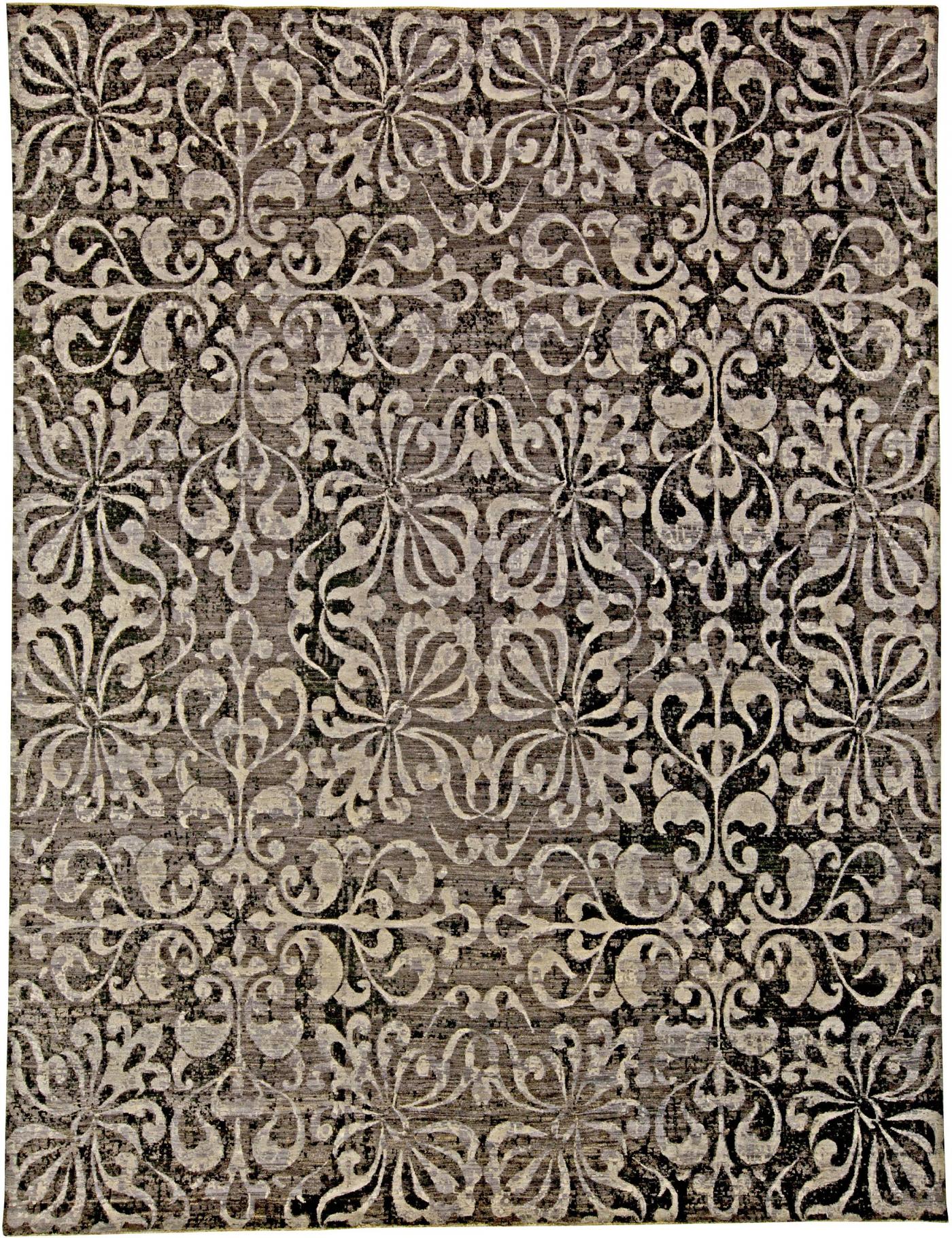 Doris Leslie Blau Collection Passion Flowers Rug in Black and Silver Gray