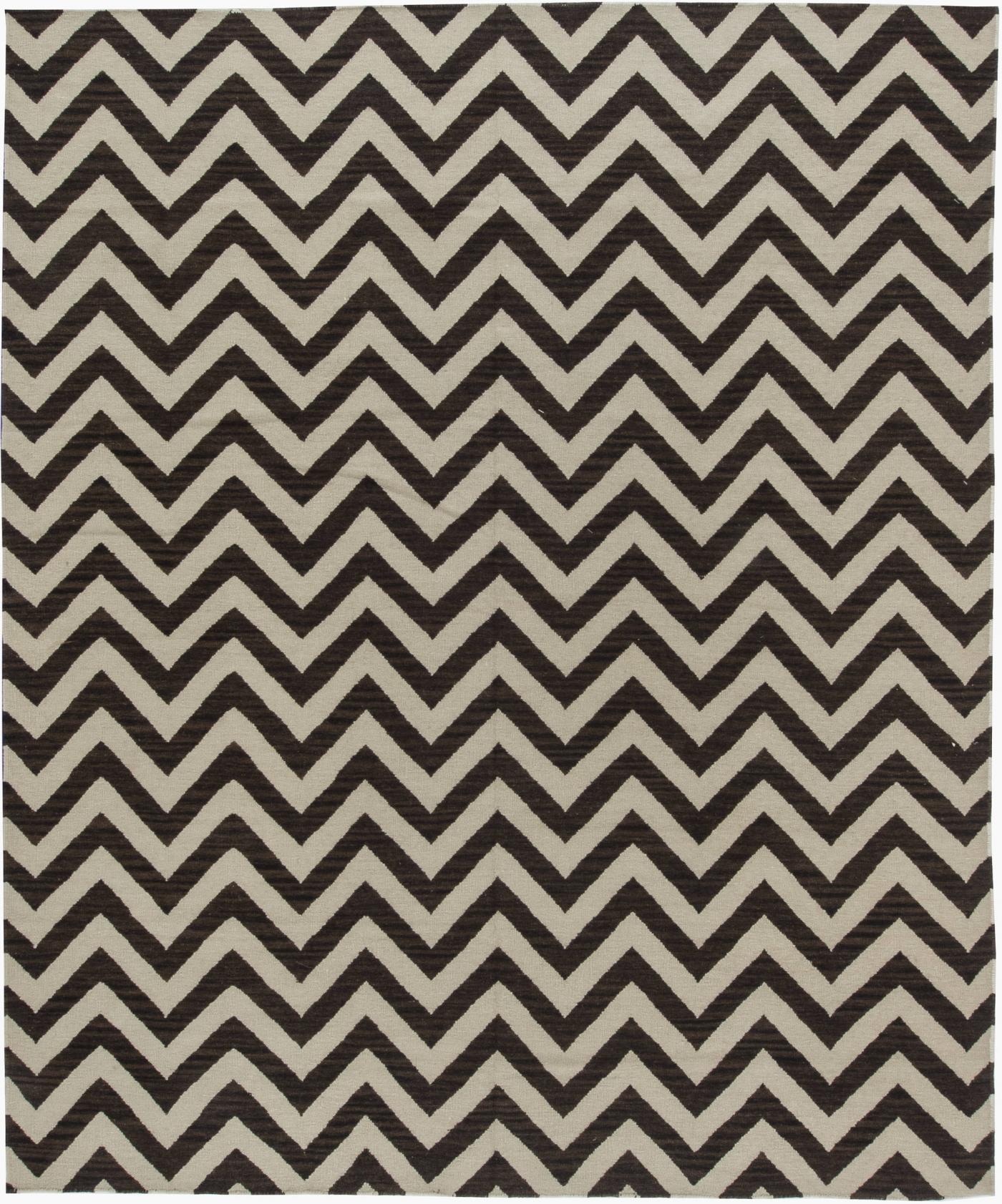 Doris Leslie Blau Collection Zig-Zag Design Brown, White Wool Rug