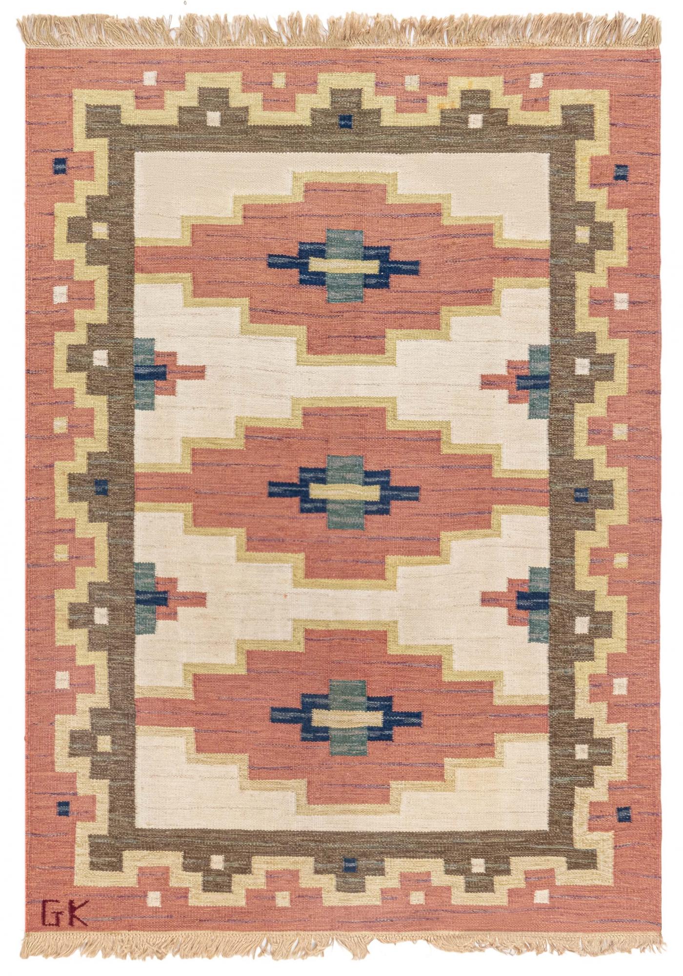 - MID-CENTURY SWEDISH FLATWEAVE WOOL RUG BY CARL DAGEL