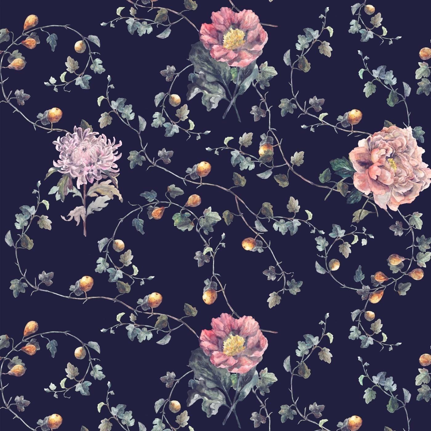 Colorway: Navy. Repeat: 48"W x 48"H. SKU#: G8400-03. Digitally Printed on Monadnock.
