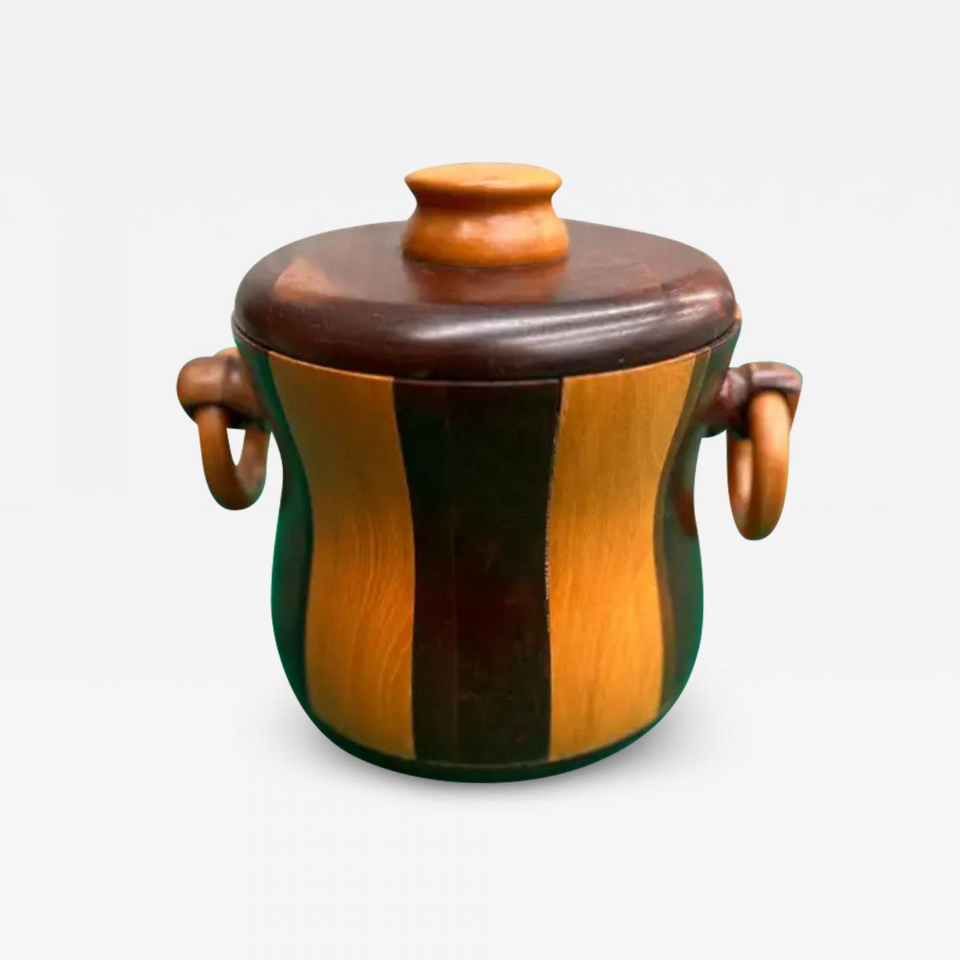Available today, this mid-century modern ice bucket that was made in the sixties is one of a kind! This beautiful wooden ice bucket is made with imbuia hardwood and Brazilian rosewood (also known as Jacaranda), and has two rounded handles on the side. This piece will be an amazing addition to any household and will add a touch of Brazilian modern style to any home.