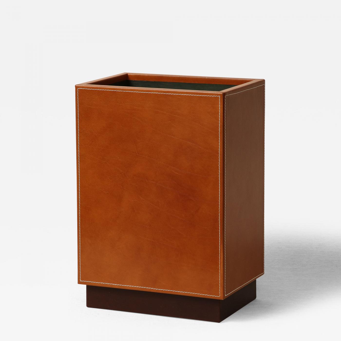 AERO limited edition leather paper bin - fully clad leather with edge stitching, leather pedestal base and leather lined