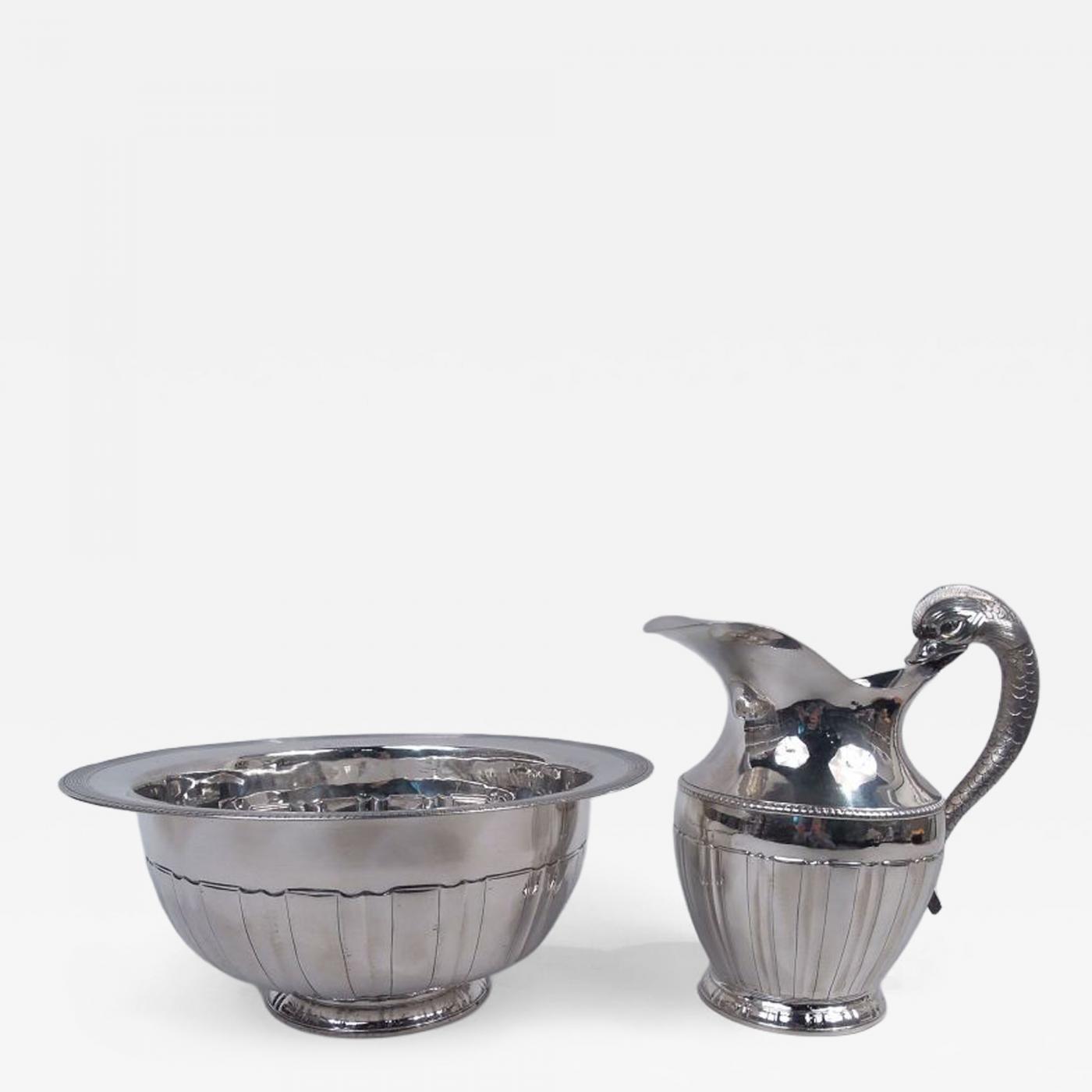 Antique Portuguese Oporto Neoclassical Silver Washing Jug and Basin