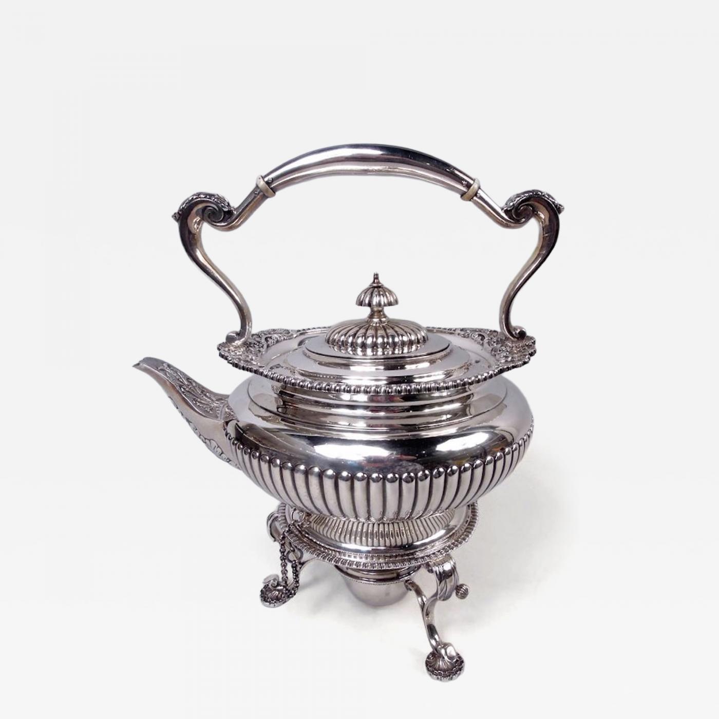 English Edwardian Georgian Sterling Silver Kettle on Stand 1904
