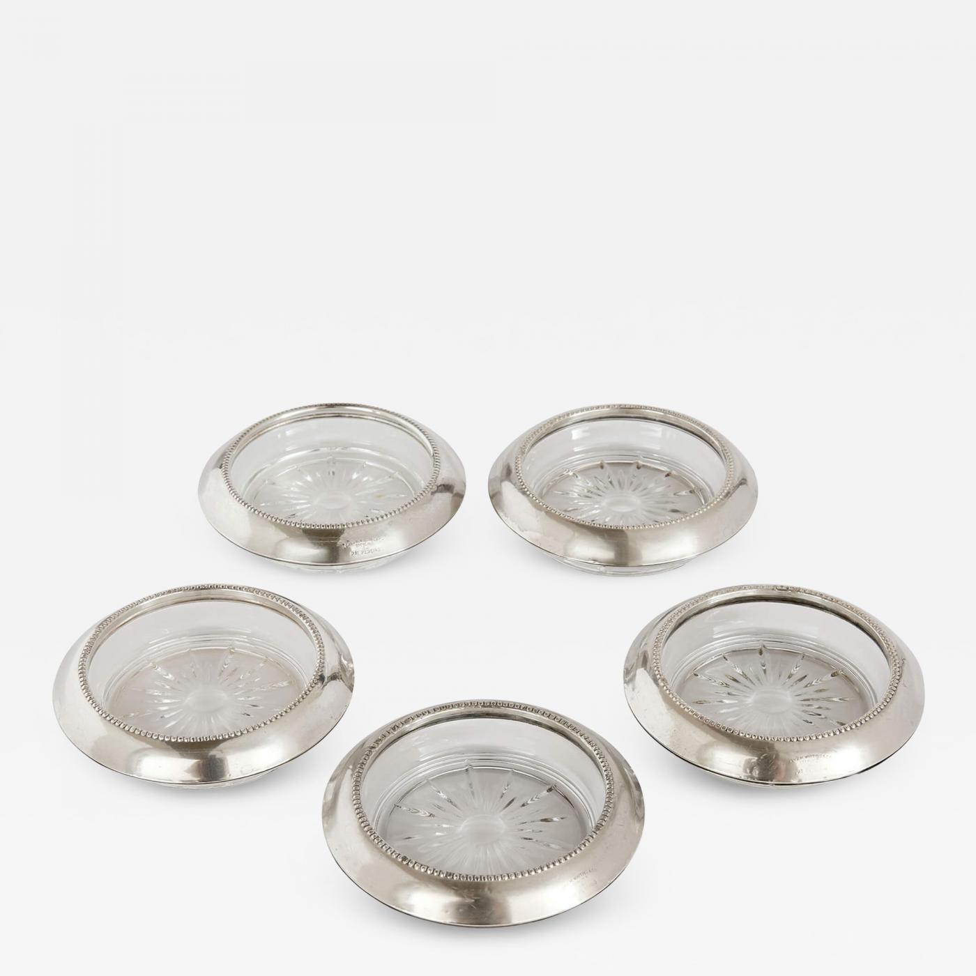 Collection of five American silver and glass coasters by Frank M. Whiting & Co.
