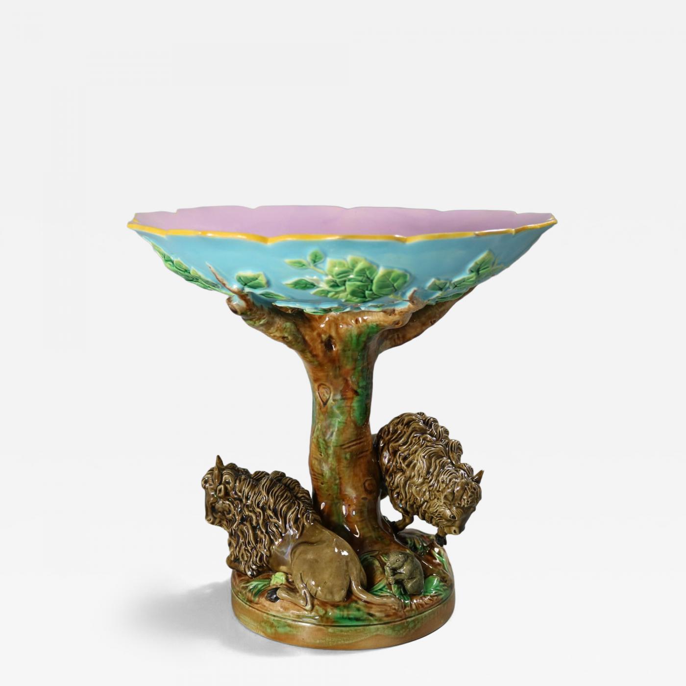 Period: 19th Century Condition: Good. Good. RESTORATION. Two filled chips to the rim. Filled chip to ear to each bison. Filled chip to end of tail of standing bison. Creation Date: 1872 Styles / Movements: Majolica, Traditional, Victorian Dealer Reference #: 23269 Incollect Reference #: 828134