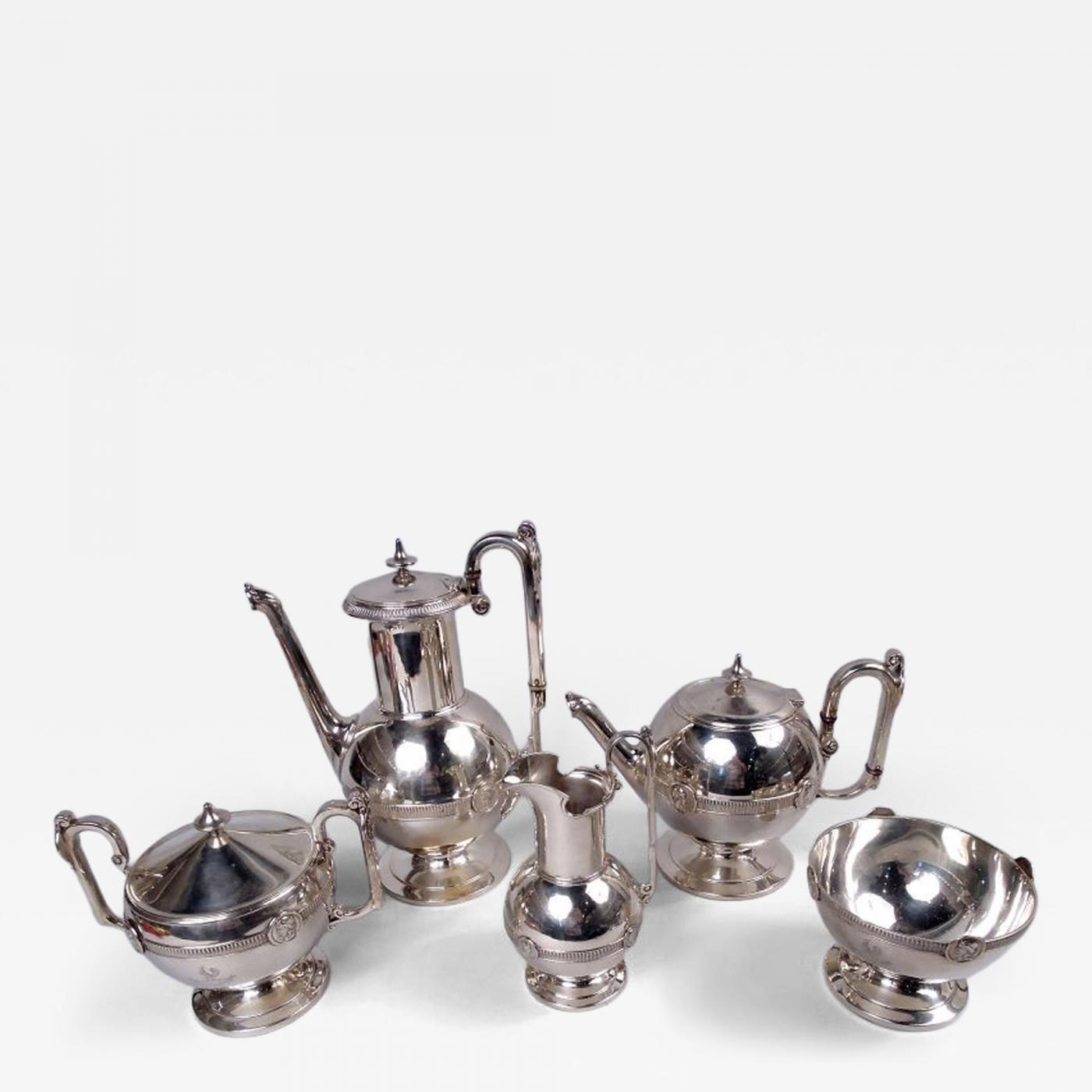 Antique Gorham Medallion Coin Silver 5-Piece Coffee & Tea Set