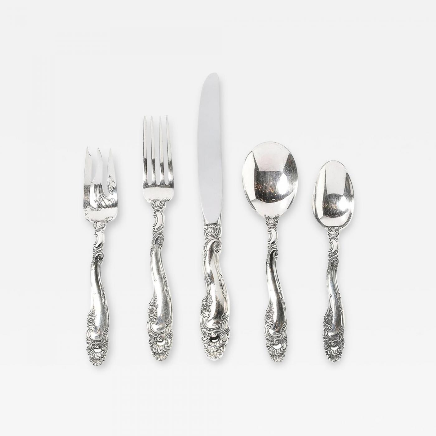 Gorham Sterling Decor Pattern Flatware Service for 12 With Serving Pieces