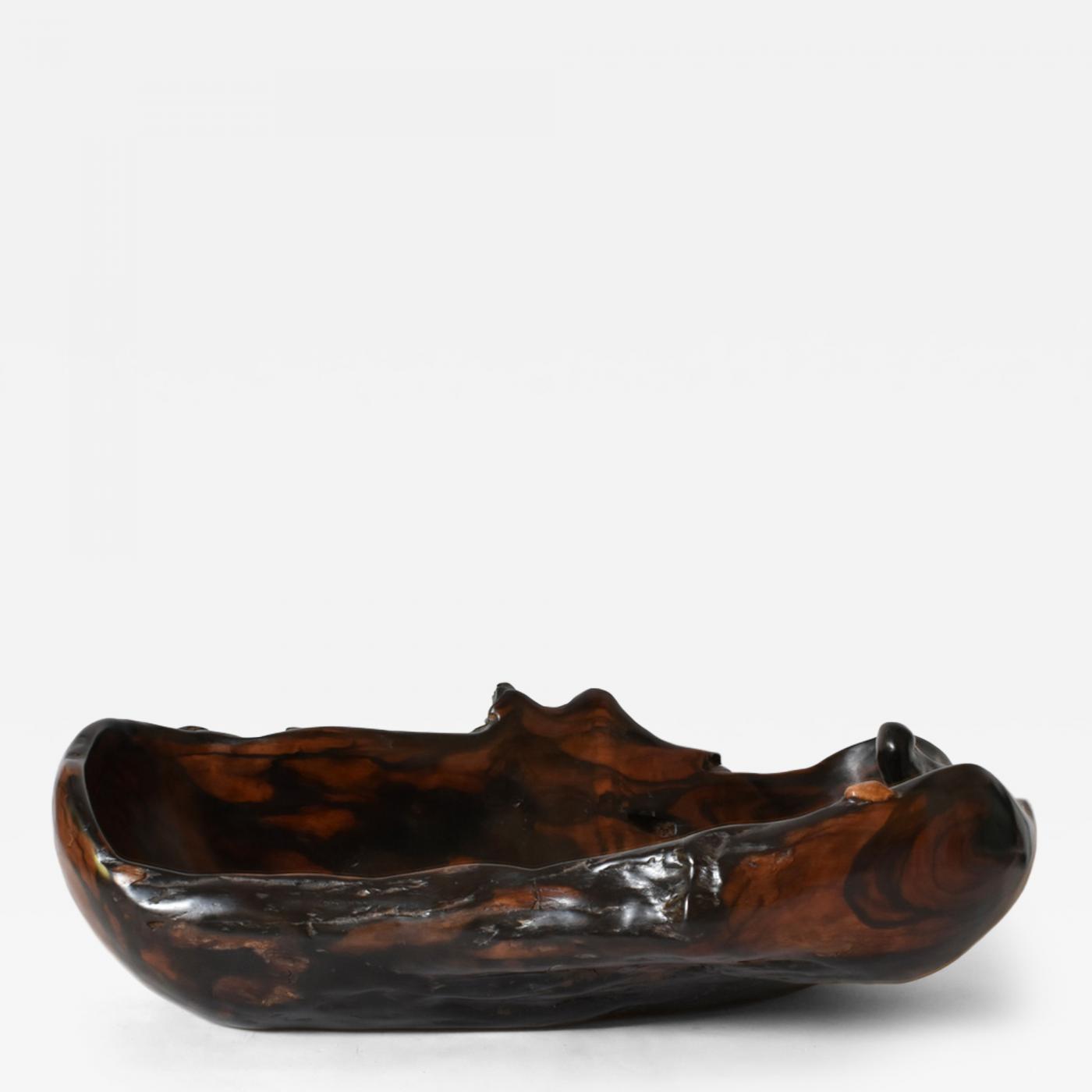 Brutalist oblong bowl, tray in Macassar ebony. France, 1970s.