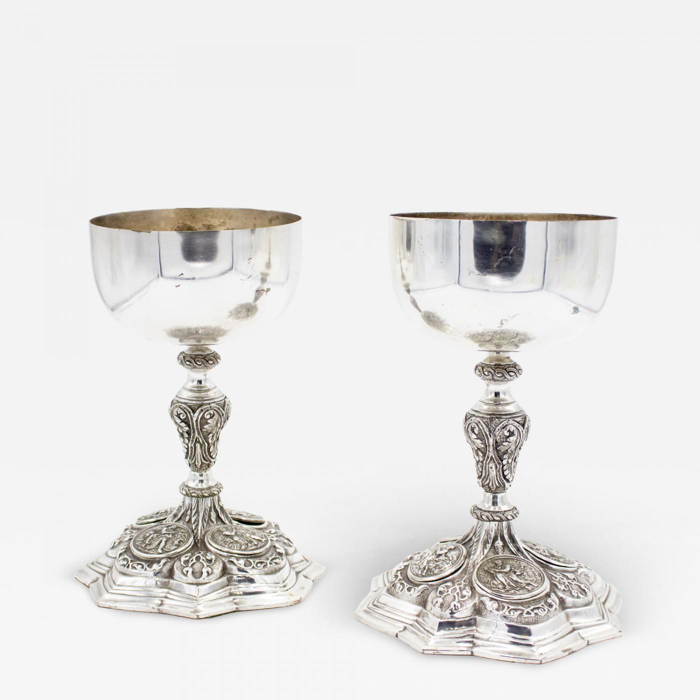 Pair of Italian Renaissance Style Silver Plate Chalices