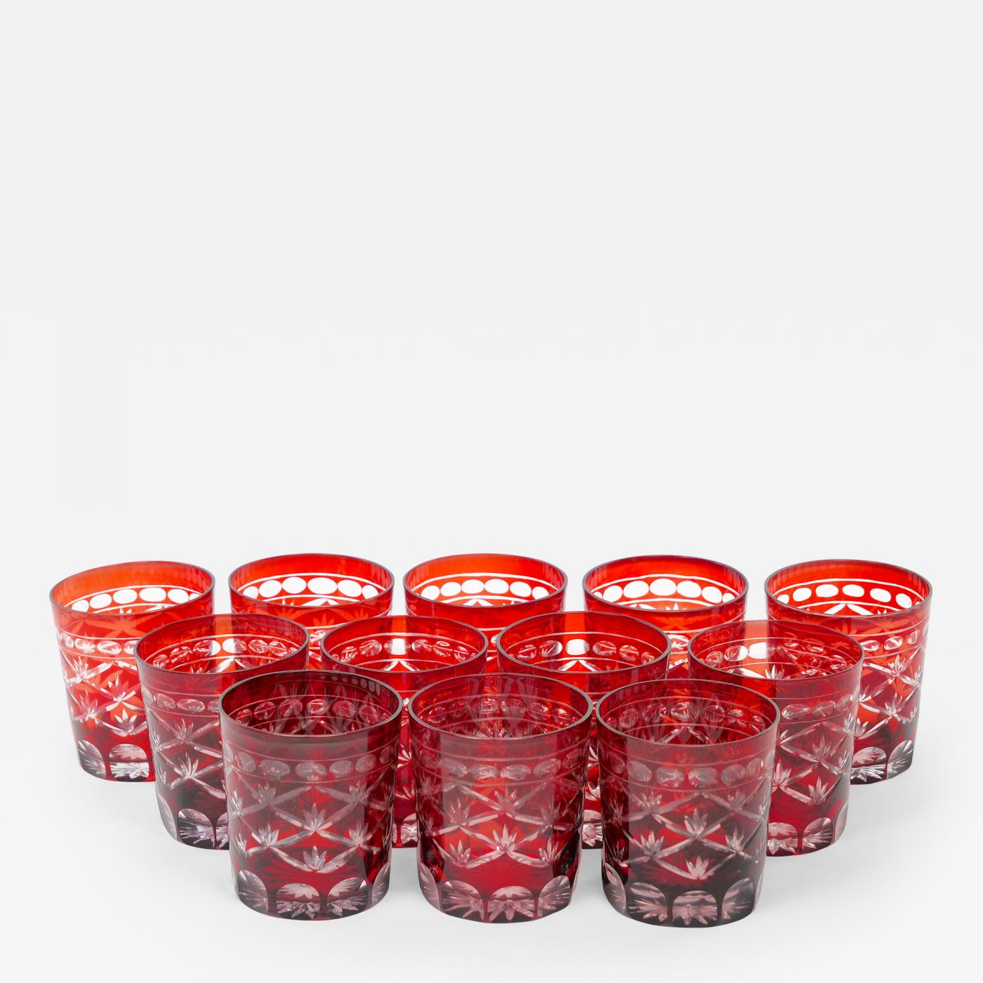 Set of Twelve '12' Antique Ruby Red Cut-to-Clear Rocks Glasses