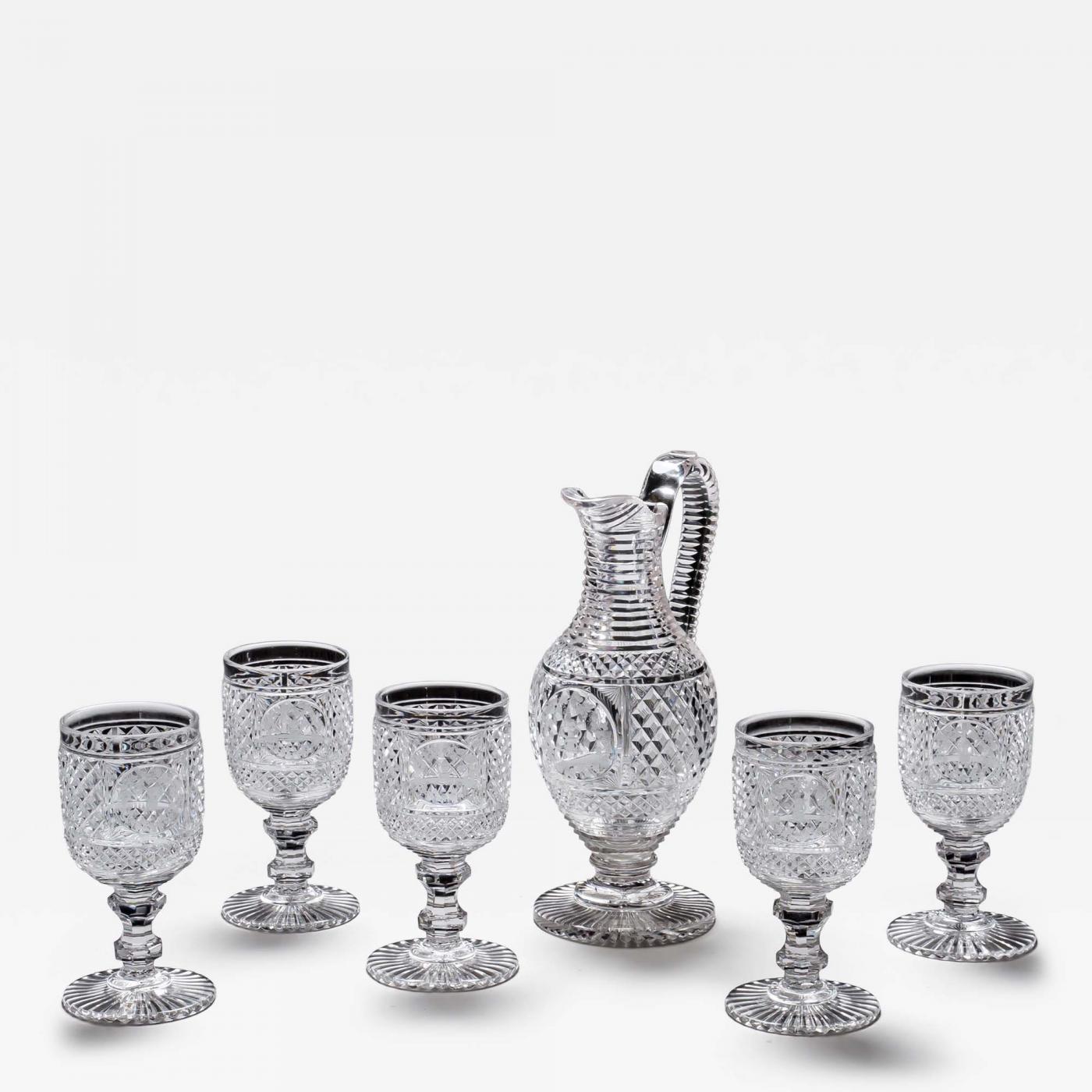 - A PAIR OF DECANTERS OF NAUTICAL INTEREST WITH FIVE MATCHING GLASSES
