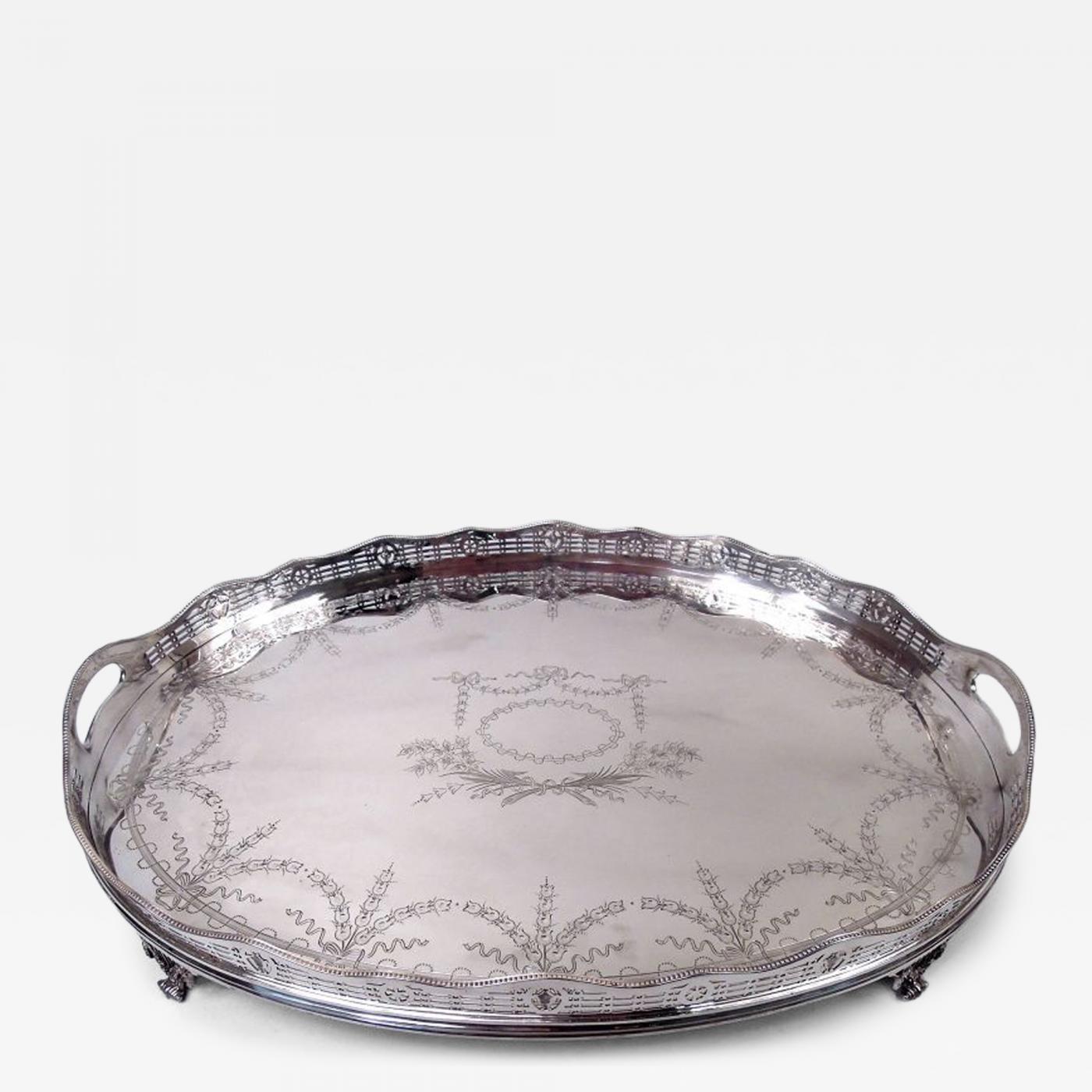 Large English Edwardian Regency Sterling Silver Gallery Tea Tray 1909