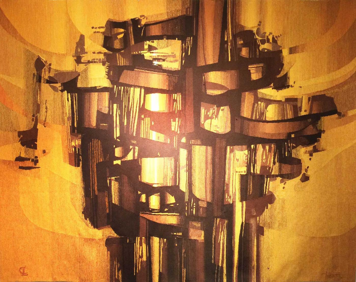 At the heart of “La Tour de Feu” is a bold, ascending composition—an abstract beacon of light and resilience—evoking both natural phenomena and inner strength. Borderie’s signature, hand-signed on the bolduc, marks the tapestry’s exceptional provenance and its place within a very limited series.